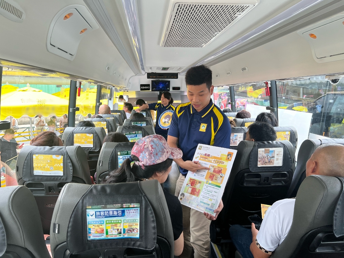 为能让更多旅客接触到防罪资讯,司警局与本澳六间博企合作,于往来口岸及酒店设施的穿梭巴士站点、巴士车厢屏幕及椅背、娱乐场周边的电视屏幕等地方展示或播放防罪宣传资讯,让旅客瞭解游澳时应注意的防罪事项,务求提升其警觉意识及防范能力。