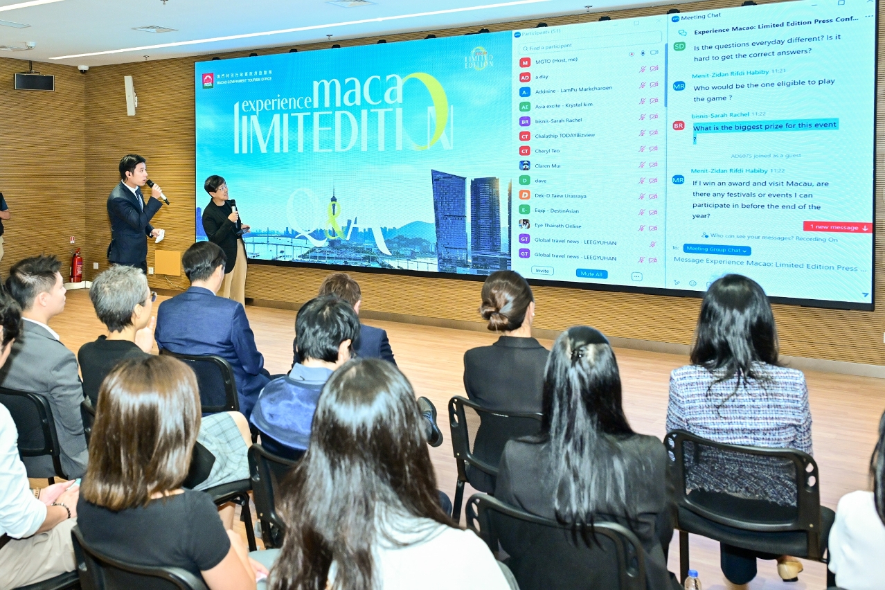 旅游局携手澳门6家综合度假休闲企业于2024年8月26日推出“感受澳门 专属体验”,透过线上互动与线下体验的深度结合,探索游历澳门的无限可能,引发更多(大中华地区以外)的国际旅客亲身来澳旅游。