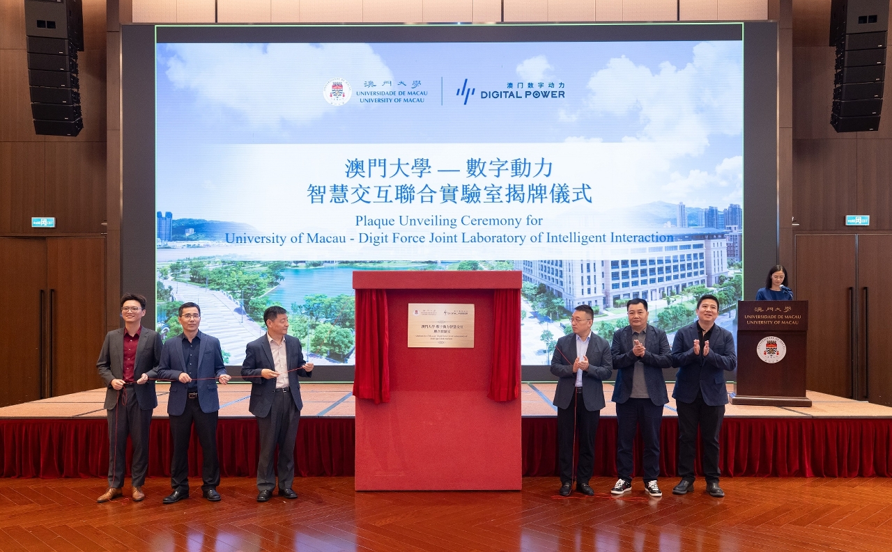 澳门大学—数字动力智慧交互联合实验室举行揭牌仪式。实验室将专注于协助不同行业人工智能化,从而创造新的生产力模式,共同推动人工智能技术快速发展,为粤港澳大湾区产学研交流合作作出示范,促进澳门与大湾区的深度融合及科技创新发展。