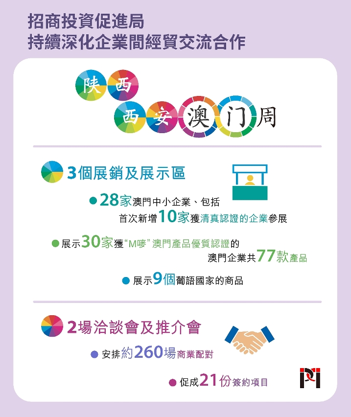 招商投资促进局在“陕西•西安澳门周”组织28家澳门中小企业,首次加入清真认证产品。在会展行业协会及绿色会展等合作方面,达至提升陕西省及澳琴间会展交流合作,以招揽更多会展活动落户澳琴。