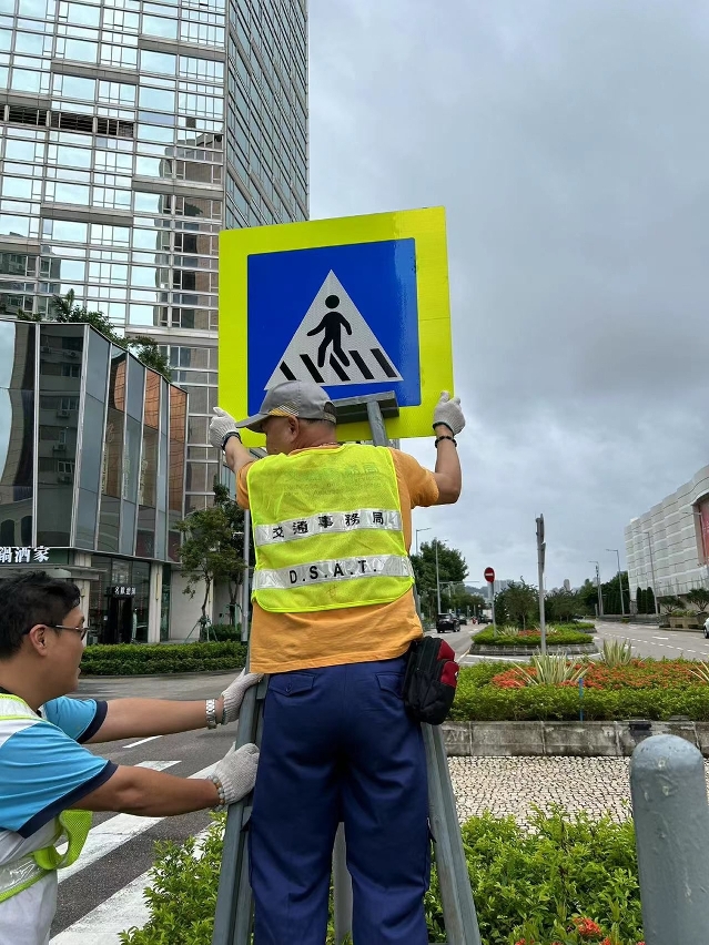 随着澳门改发三号台风信号,交通务局加派人员巡查驾驶学习考试中心及学习场地、各项道路工程临时交通设施、道路交通设施等,以保障道路安全。另外,局方亦指示公共停车场管理公司检查各项设施,确保台风后正常运作。