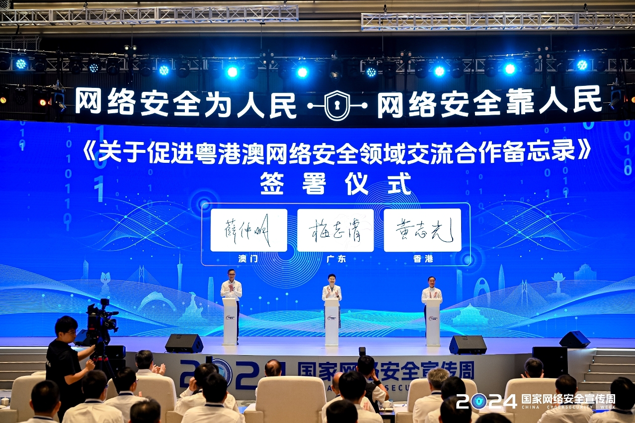 2024年国家网络安全宣传周于9月9日至15日在全国范围举办,并于广东省广州市举行开幕式等重要活动,特区政府组织代表团出席开幕式与粤方及港方代表联合签订《关于促进粤港澳网络安全领域交流合作备忘录》。