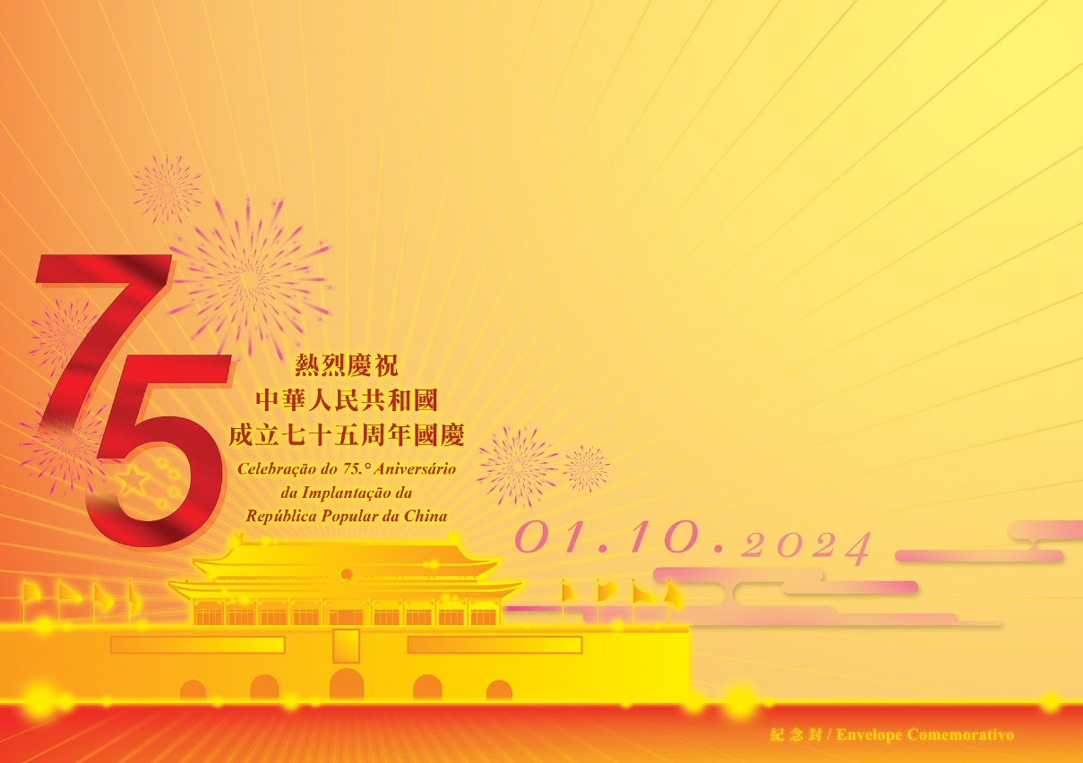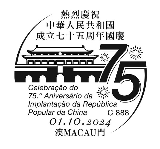 为庆祝中华人民共和国成立七十五周年国庆,邮电局特于二零二四年十月一日上午九时至下午二时,分别于邮政总局集邮商店及通讯博物馆商店设置临时柜台,为市民提供加盖“热烈庆祝中华人民共和国成立七十五周年国庆”纪念邮戳服务。