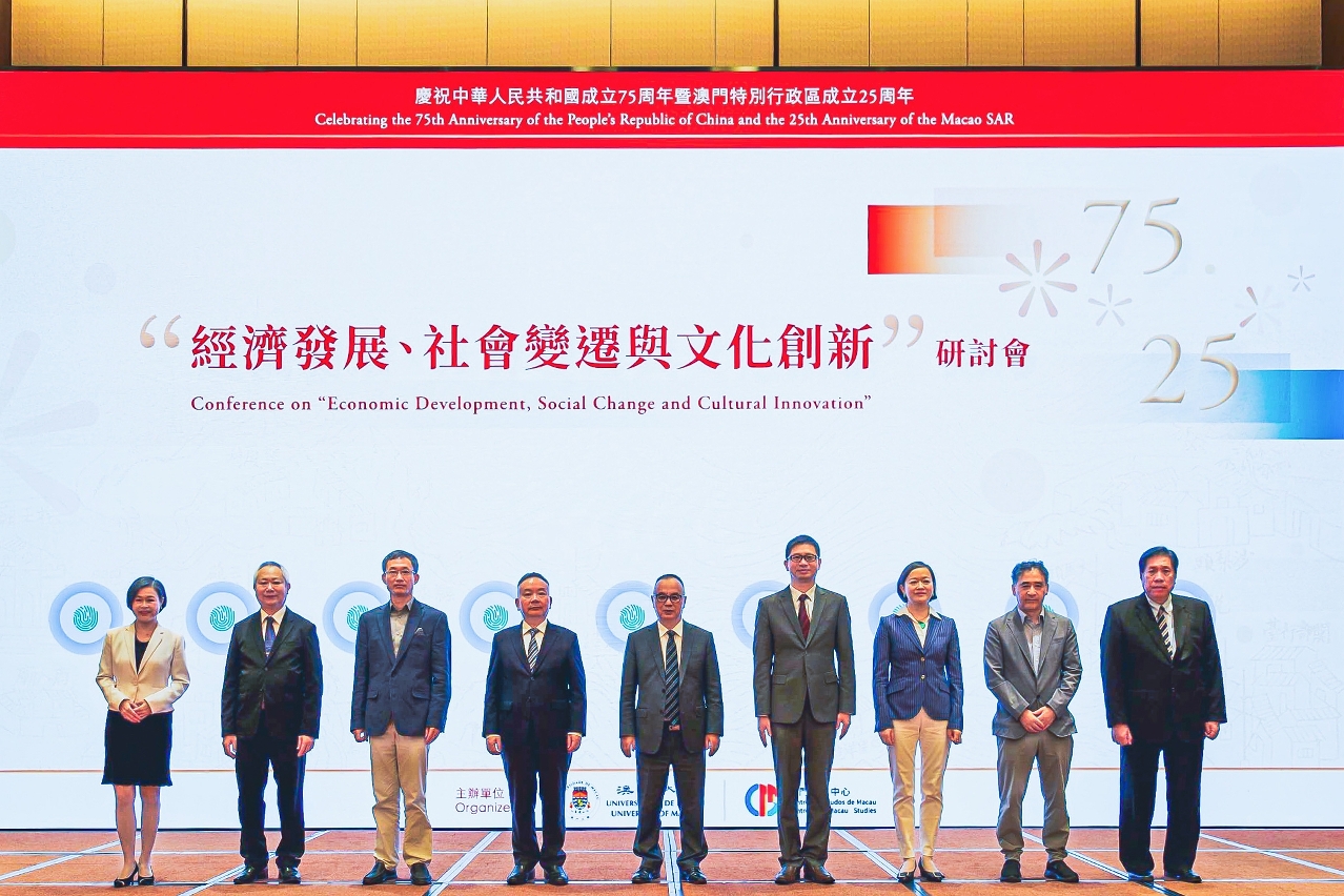 澳门大学澳门研究中心举办“庆祝中华人民共和国成立75周年暨澳门特别行政区成立25周年—‘经济发展、社会变迁与文化创新’研讨会”,以澳门回归25周年为契机,汇聚专家学者总结澳门特别行政区在经济、社会与文化领域取得的成就及面临的挑战。