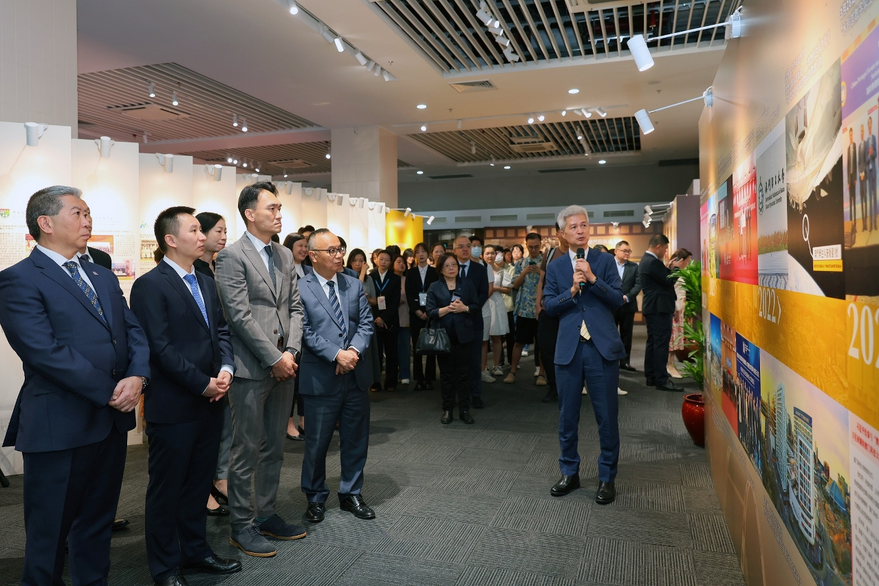宋永华致辞时表示,适逢今年是中华人民共和国成立75周年,以及澳门特别行政区成立25周年,澳大与澳门九所高等院校共同举办展览,一同回顾澳门特区成立前后的高教治理、发展历程,以及探讨未来高教发展与展望。他又指,澳门高等教育历经25年的耕耘,取得了一连串的发展成就。他希望在中央政府以及澳门特区政府的支持下,在澳门各高校的共同努力下,继续为澳门高教发展作出最大贡献,立足澳门,共建湾区,融入国家,走向世界。