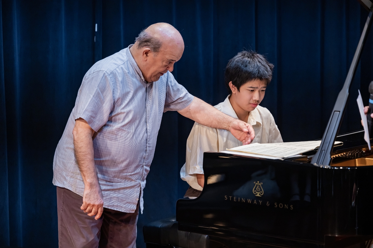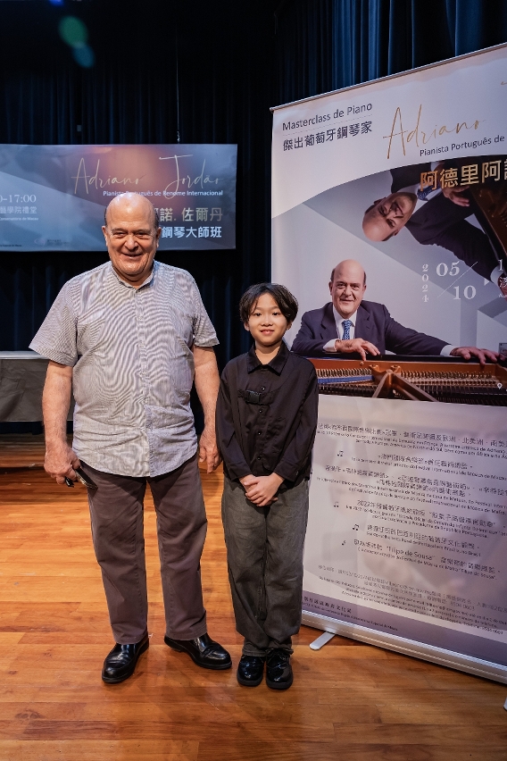 葡萄牙钢琴家阿德里阿诺•佐尔丹曾获法国“德布西国际音乐比赛”冠军,亦为澳门国际音乐节的首任艺术总监,其卓越的钢琴演奏技艺与深厚的音乐素养广受赞誉。此次他以钢琴家身份分享了自己对音乐作品的理解与55年来的钢琴演奏心得,更用其独特的艺术视角和丰富的演奏经验,为澳门青少年钢琴学生作出指导。他引导学生在演奏过程中表达音乐的叙事性,激发学生对画面场景的想像力,运用多种技巧展现声音色彩的变化,并为学生讲述作曲家的生平及乐曲的创作背景,强调在学习音乐的过程中,练习与思考相辅相成的重要性。大师对学生们所展现出的才华及天赋,也给予肯定和赞扬。