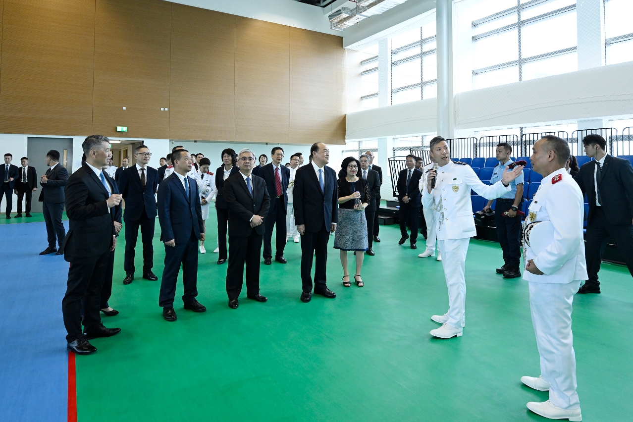 揭幕仪式后,一众嘉宾参观了大楼的多项设施及训练场地,了解行动通讯中心及全澳城市电子监察系统设备室的运作模式,亦到模拟训练场观看实地演练,以及到体育馆和器械训练室等运动设施进行视察。