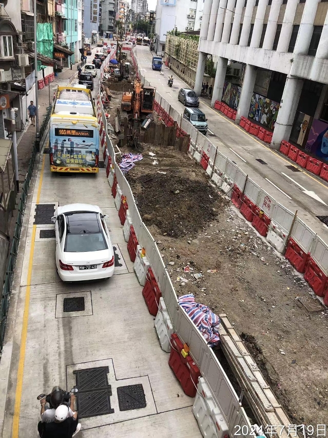 工程透过分段施工和局部围蔽方式,确保车辆通行。此外,也要求承建单位定期对施工所影响区域的排水系统进行检查及增加泵水设施,减低在施工期间因风雨季引发水浸情况。