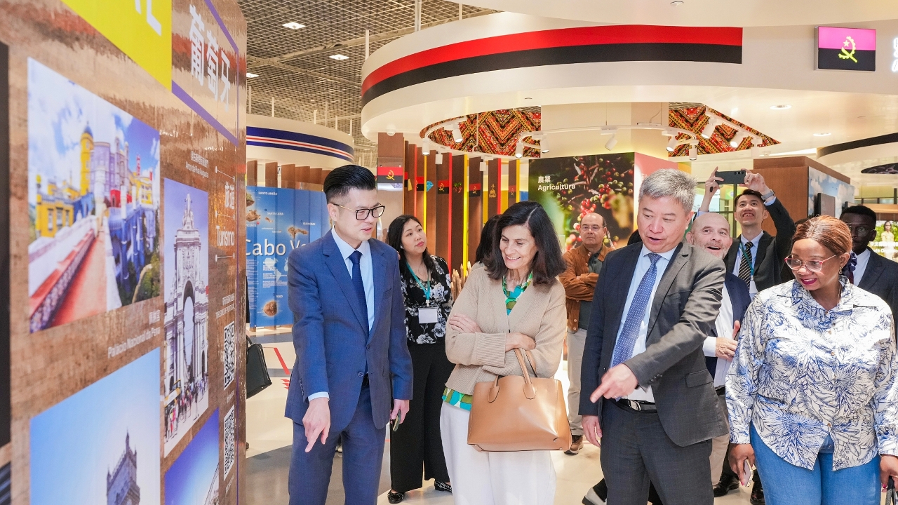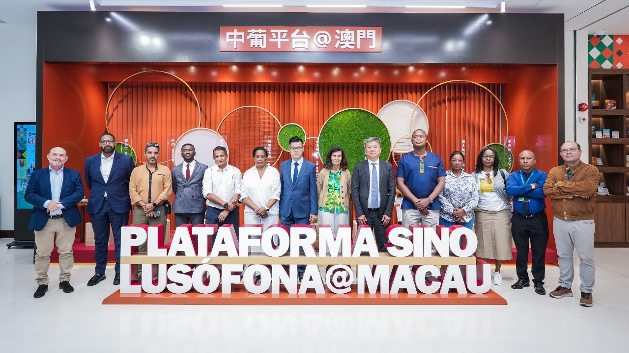 10月30日下午,葡语国家保险监管机构代表到访设于中国与葡语国家商贸合作服务平台综合体内的“中国与葡语国家商贸合作服务平台展示馆”,得到招商局行政管理委员会委员李藻森的接待。招商局人员向代表团介绍澳门“中葡平台”的发展历程和工作内容,以及在经贸、金融、青年创业、旅游、中医药、文化、教育7个范畴的工作成果,并带领代表团参观各国的专属展示区及葡语国家产品展示中心。