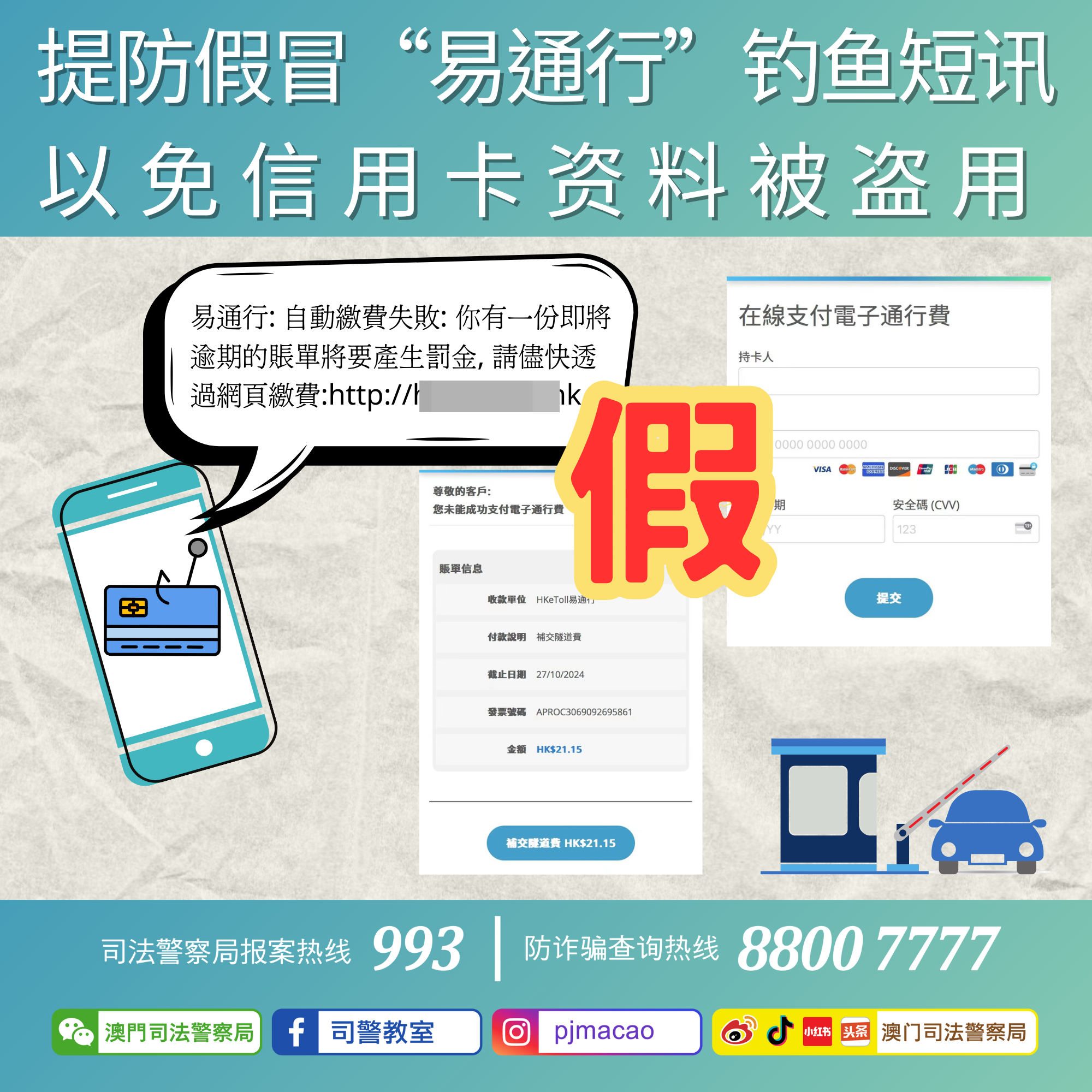 • 司警呼吁提防假冒“易通行”钓鱼短讯