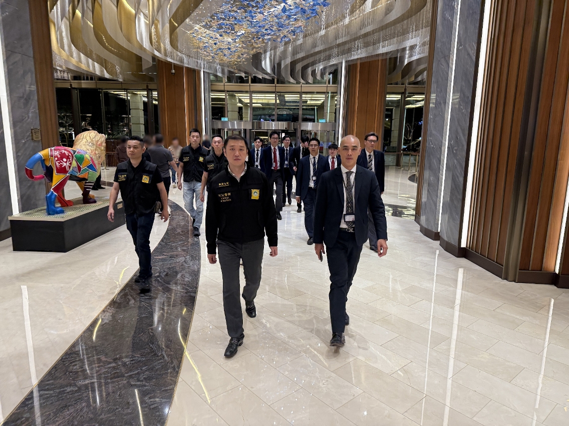 同日晚上,司警局、博监局合共派出17名人员于路氹城区多家娱乐场内展开反罪恶突击巡查联合行动,会同相关娱乐场保安部人员巡查场内情况。是次联合行动截查了共146名人士(128男18女),并未发现涉及不法汇兑或其他犯罪;其中3名逾期逗留的内地居民(2男1女),经完成相关调查程序后已移交治安警察局处理。