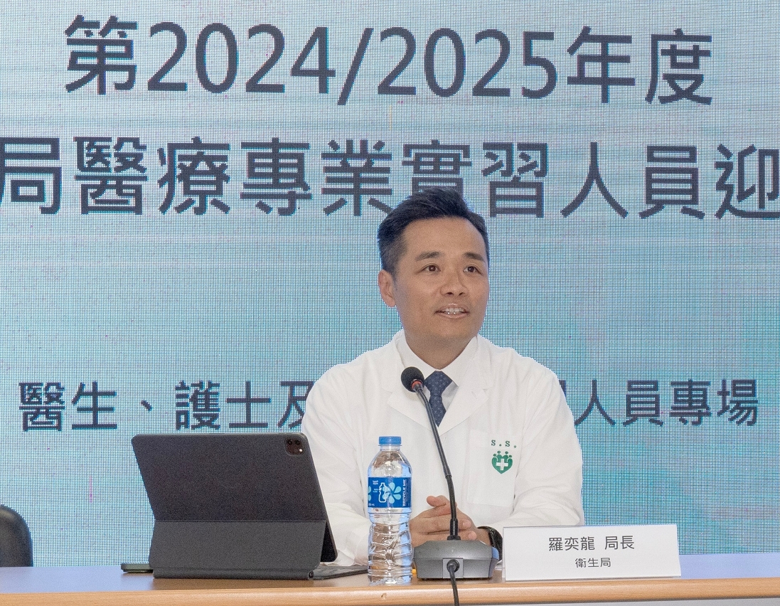 新一届(第2024/2025年度)医疗专业实习人员于11月1日起分批在卫生局进行实习,日前卫生局特为实习人员举办“医疗专业实习人员迎新会”,由卫生局罗奕龙局长主持,仁伯爵综合医院郭昌宇院长、社区医疗卫生厅王燕代厅长、仁伯爵综合医院黄洁薇代护士总监和卫生局医疗人员实习协调员梁颂文医生等出席,听取了实习人员对实习的期望及意见,出席人员超过240人。