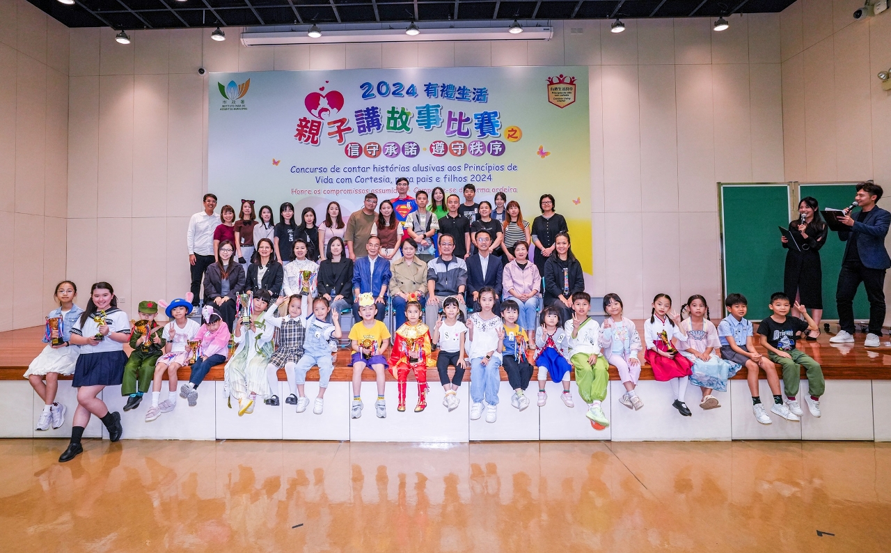 由市政署举办的“2024有礼生活亲子讲故事比赛之信守承诺、遵守秩序”早前在公民教育资源中心顺利举行,是次比赛以《有礼生活约章》内“信守承诺”和“遵守秩序”为故事主题。来自全澳13间学校的38名学生及家长,组成14支队伍参加比赛,施展才华。