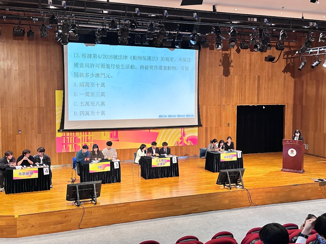 此外,由市政署主办、澳门大学学生会协办的“2024全澳青少年学生市政时事常识问答比赛”已于十月二十七日及十二月一日在澳门大学举行初赛、准决赛及决赛,内容涵盖市政署职能及相关时事,共吸引二百人次参与。经过一轮初赛角逐,中学组及大专组共八队进入准决赛及决赛。决赛包括论述题及抢答题环节,论述题内容主要围绕市政署公民教育、城市清洁、动物保护、活动设施及园林绿化等工作。