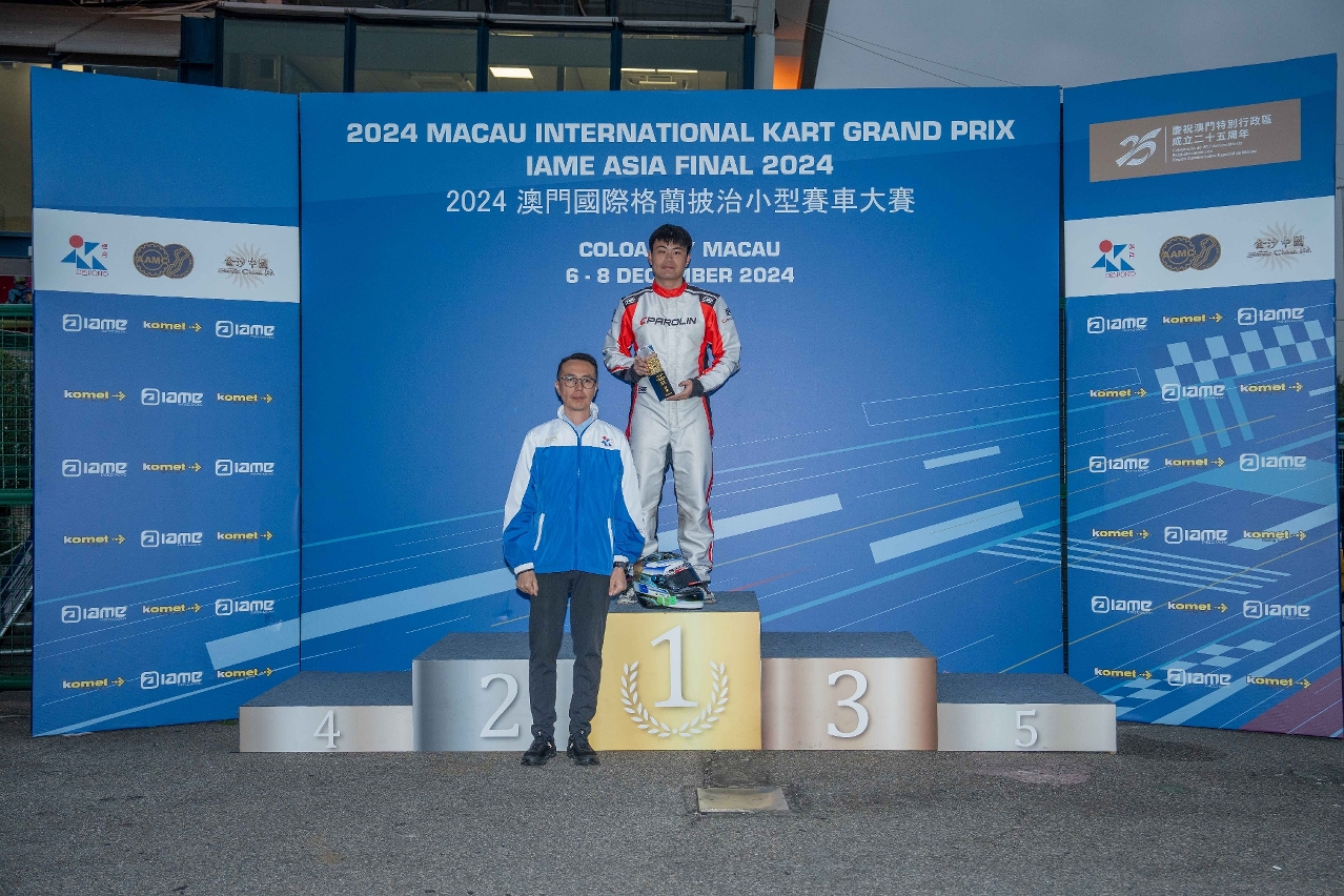 赛事结束后,随即进行颁奖仪式,颁奖嘉宾包括体育局局长张子轩、中国-澳门汽车总会理事长何比道、金沙中国有限公司行政副主席王英伟、体育局代副局长李诗灵、IAME首席执行官Filippo Fagnani及IAME首席财务官Marco Moretti。