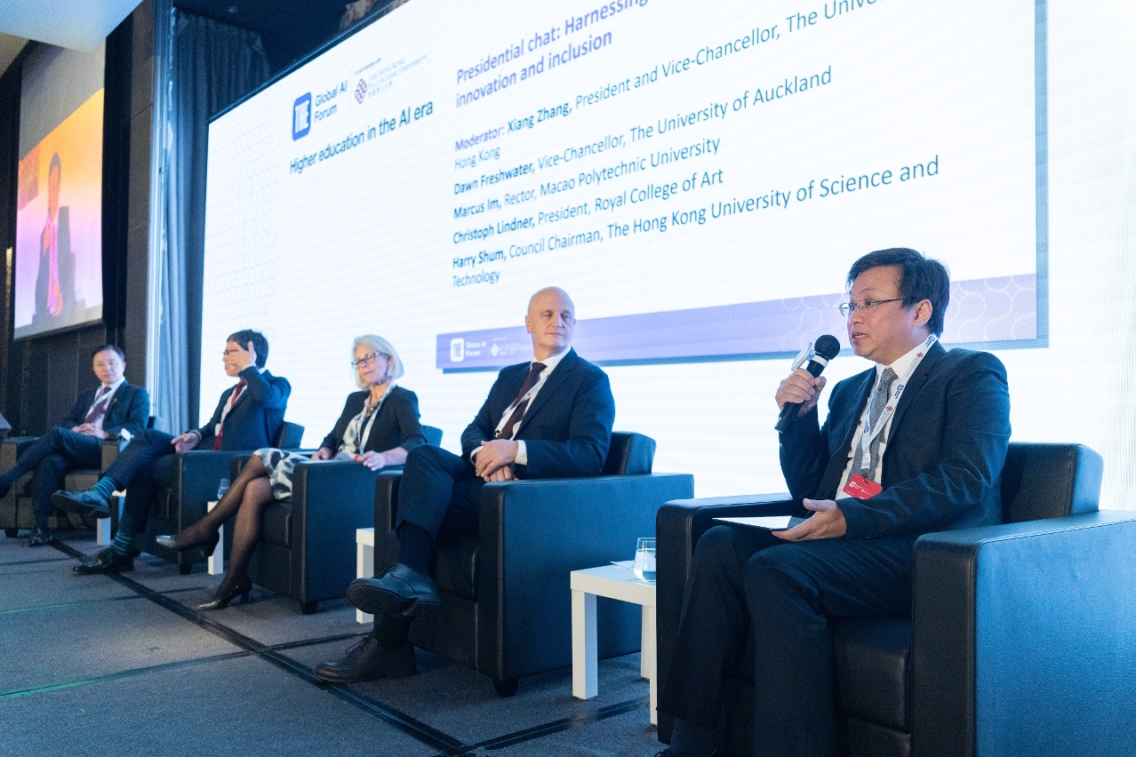 泰晤士高等教育“国际人工智能论坛”于香港理工大学举行,主题为“人工智能时代的高等教育”,来自全球的顶尖学者聚首一堂,分享在高等教育、科技创新及和伙伴合作等方面的真知灼见,校长对谈演讲嘉宾包括:香港大学校长张翔、香港科技大学校董会主席沈向洋、澳门理工大学校长严肇基、新西兰奥克兰大学校长Dawn Freshwater,以及英国皇家艺术学院院长Christoph Lindner。