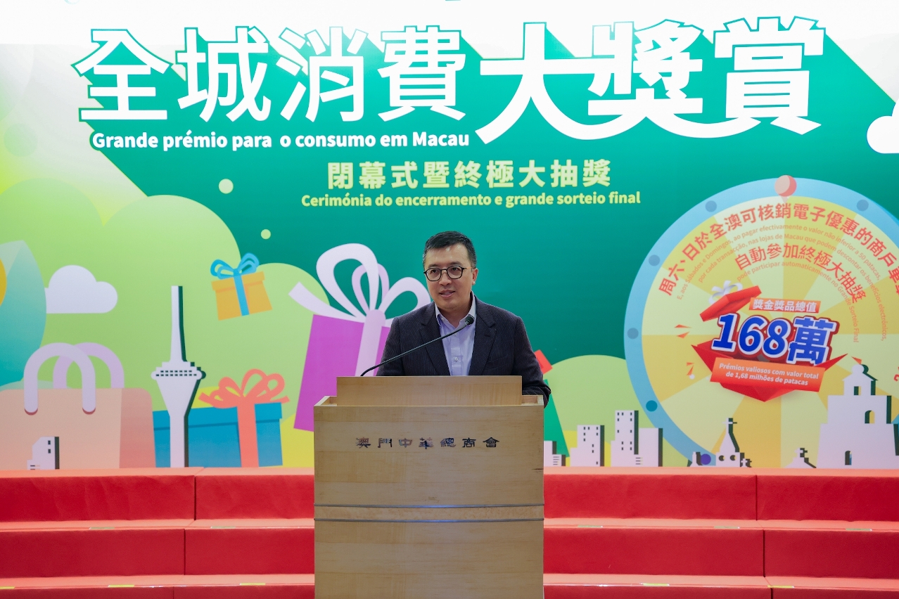 由特区政府联同澳门中华总商会于去年合办为期13周的“全城消费大奖赏”大型促消费活动今(21)日于澳门中华总商会何贤先生纪念堂举行闭幕式及终极大抽奖。