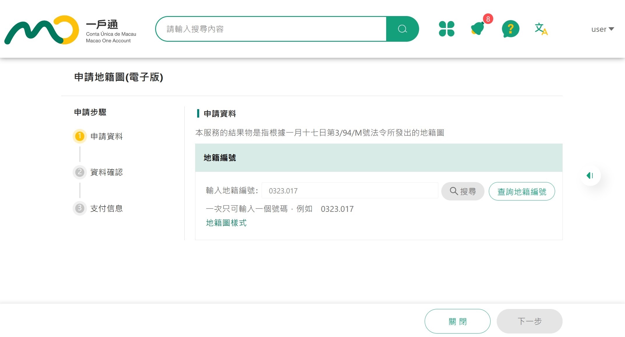 申请流程简单明瞭,只需输入地籍编号、确认申请并完成付款,即可成功提交申请。随后,市民可透过“一户通”平台查阅申请进度、查看过往记录并下载文件,提升了申请的便利性。