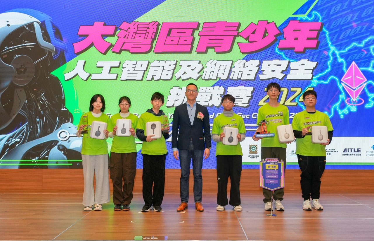 由澳门特区司法警察局、教育及青年发展局,以及香港特区警务处联合主办,澳门科学馆、香港特区教育局、中国科学院香港创新研究院人工智能与机器人创新中心、资讯科技教育领袖协会,以及广州市人工智能产业发展促进会共同协办的“大湾区青少年人工智能及网络安全挑战赛2024”,已于2025年2月9日在澳门举行决赛。来自粤港澳大湾区合共117名青少年学生在本澳参加三日两夜的“人工智能训练营”及决赛环节,比赛最终由澳门圣若瑟教区中学第五校、香港圣公会林裘谋中学和香港明爱粉岭陈震夏中学同学组成的小队勇夺全场总冠军。