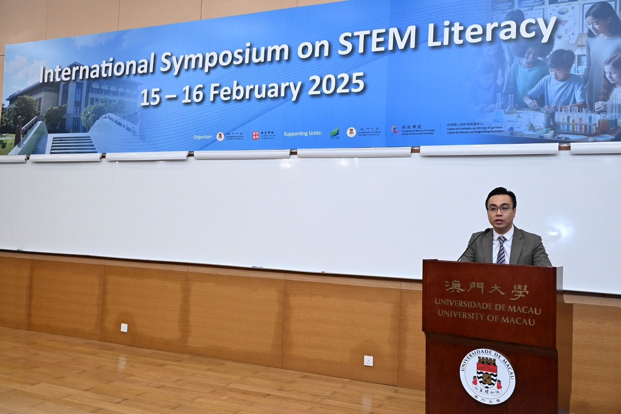 澳大教育学院院长范良火期望研讨会能激发新思维,推动跨界融合创新,促进科学教育实践发展。他又回顾了学院的发展历程,并指近年通过深化教育改革和推动科研合作取得了丰硕的成果。教青局教育资源厅厅长邓伟强指出,澳门一直致力于提升学生的科技素养,并通过建设教师培训和创新教育资源平台,助力教育体系升级,进一步推动科技与教育融合,促进社会可持续发展。