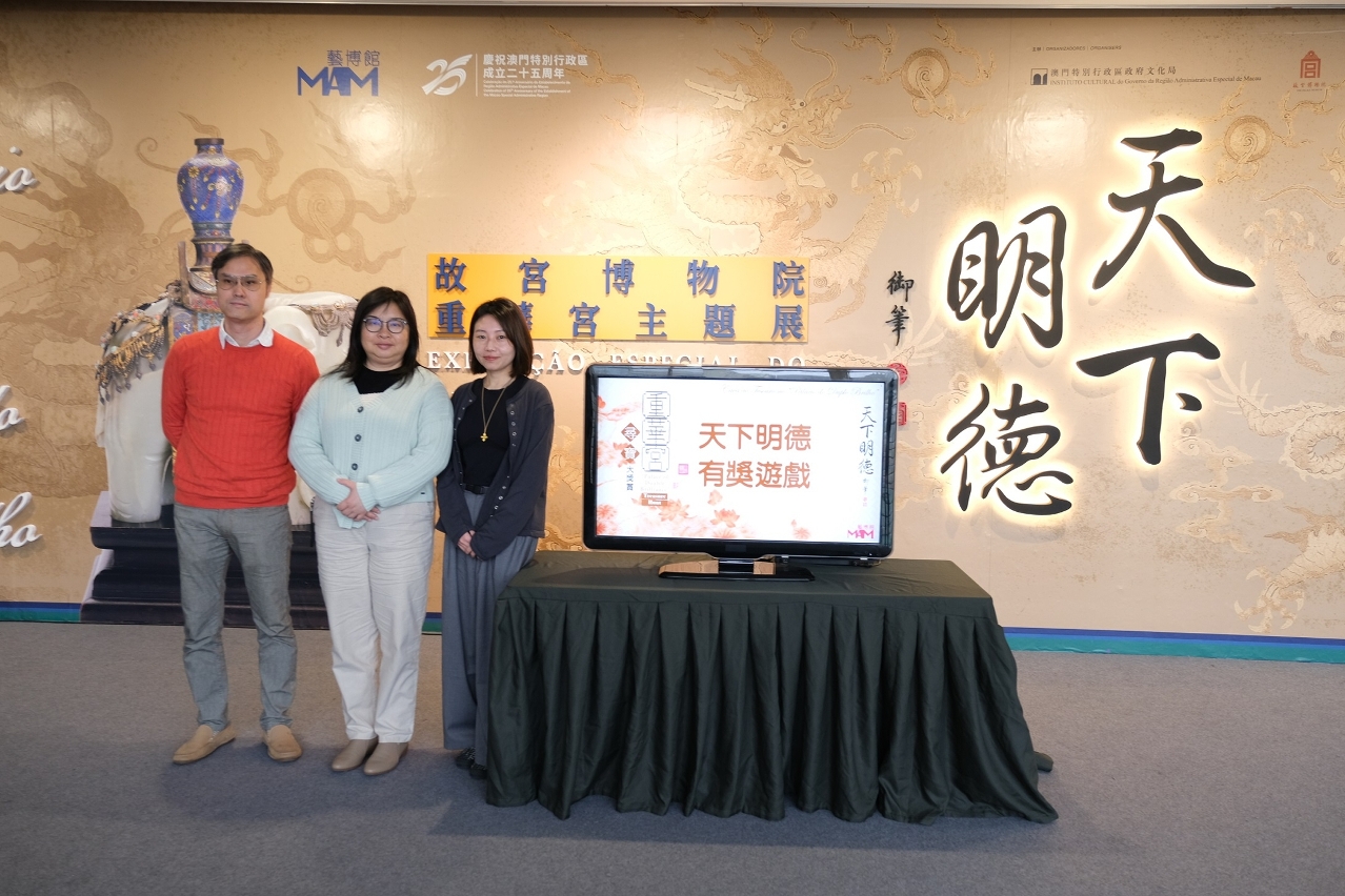 澳门特别行政区政府文化局与故宫博物院主办的年度大展“天下明德——故宫博物院重华宫主题展”展出逾130件/套故宫珍品,以乾隆皇帝的潜邸重华宫为主题,展现乾隆皇帝作为儿子、丈夫,皇帝不同身份下所显露的孝道、情深、治国智慧与文化风范,回顾他不同凡响的人生轨迹与丰功伟业。展览期间推出的一系列活动和有奖游戏,吸引众多观众参与,其中“重华宫寻宝”大奖赏已抽出26名得奖幸运儿,颁奖仪式及多项推广活动将于3月2日(星期日)展览闭幕日在文化局澳门艺术博物馆举行。