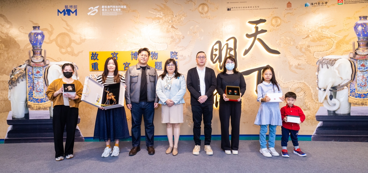 • 由澳门艺术博物馆代馆长吕咏儿、故宫博物院宫廷历史部副主任刘政宏及澳门日报副总编辑郑国伟颁发“重华宫寻宝”大奖赏奖品