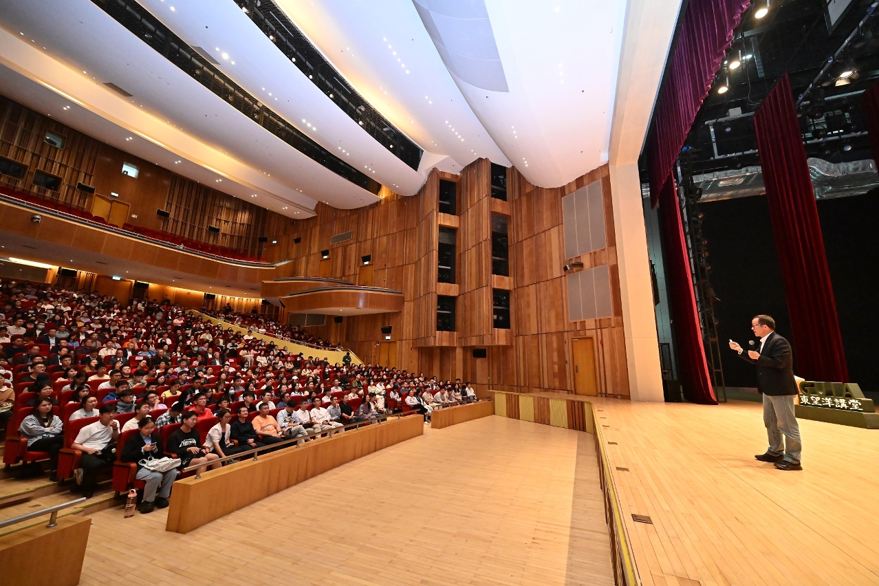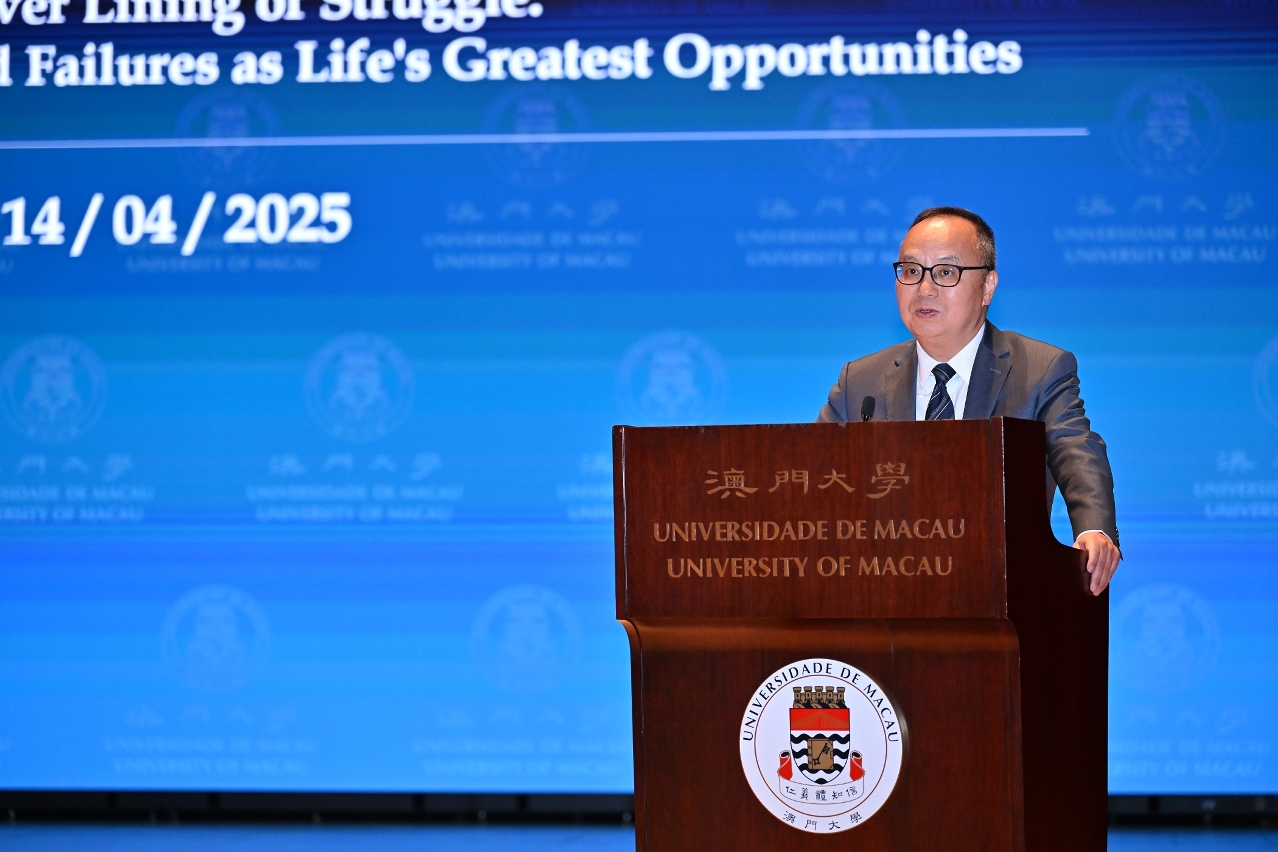 澳门大学今(14)日举办大学讲坛暨东望洋讲堂,由新东方教育科技集团董事长俞敏洪以“人生壮志路,月涌大江流”为题发表演讲,分享如何将挑战转化为成长动力、如何在逆境中保持定力。