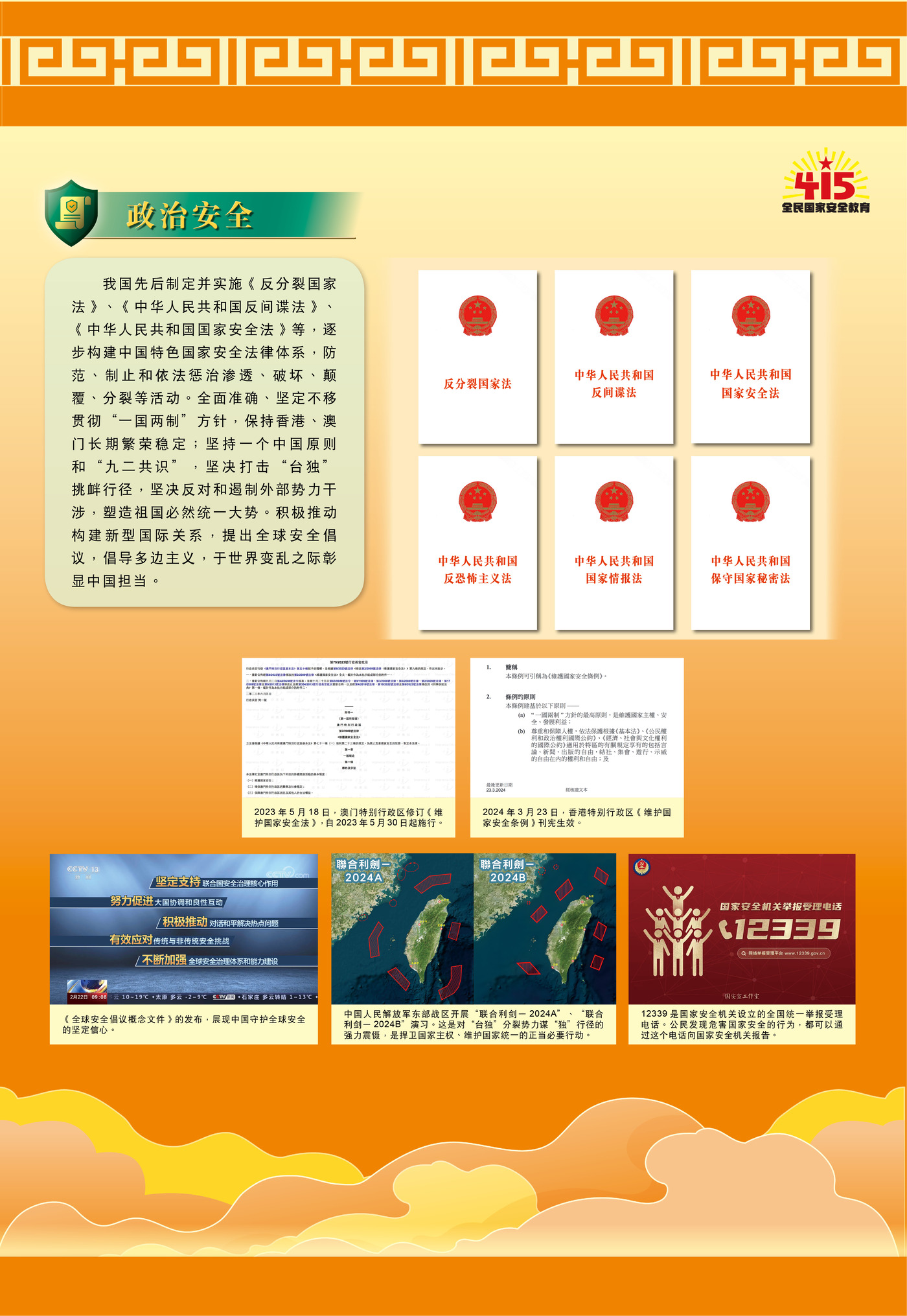 2025年4月15日是我国第十个“全民国家安全教育日”,澳门特别行政区政府与中央人民政府驻澳门特别行政区联络办公室连续第八年联合举办的“全民国家安全教育展”于当天揭幕。截至4月24日,逾20,000人次进场参观展览,专题网站也录得超过60,400次点击浏览。