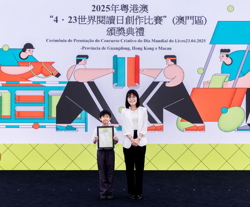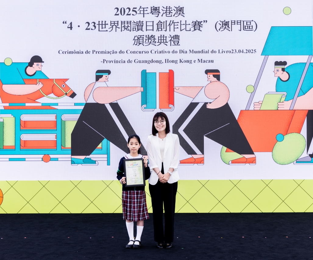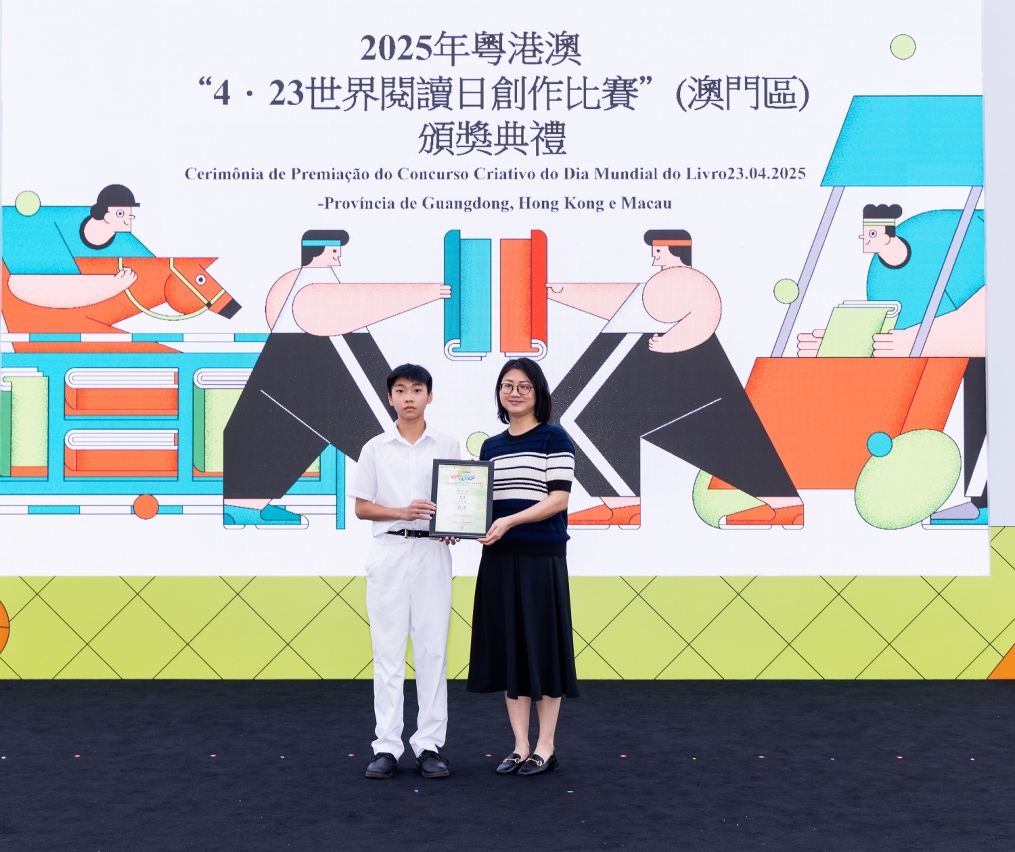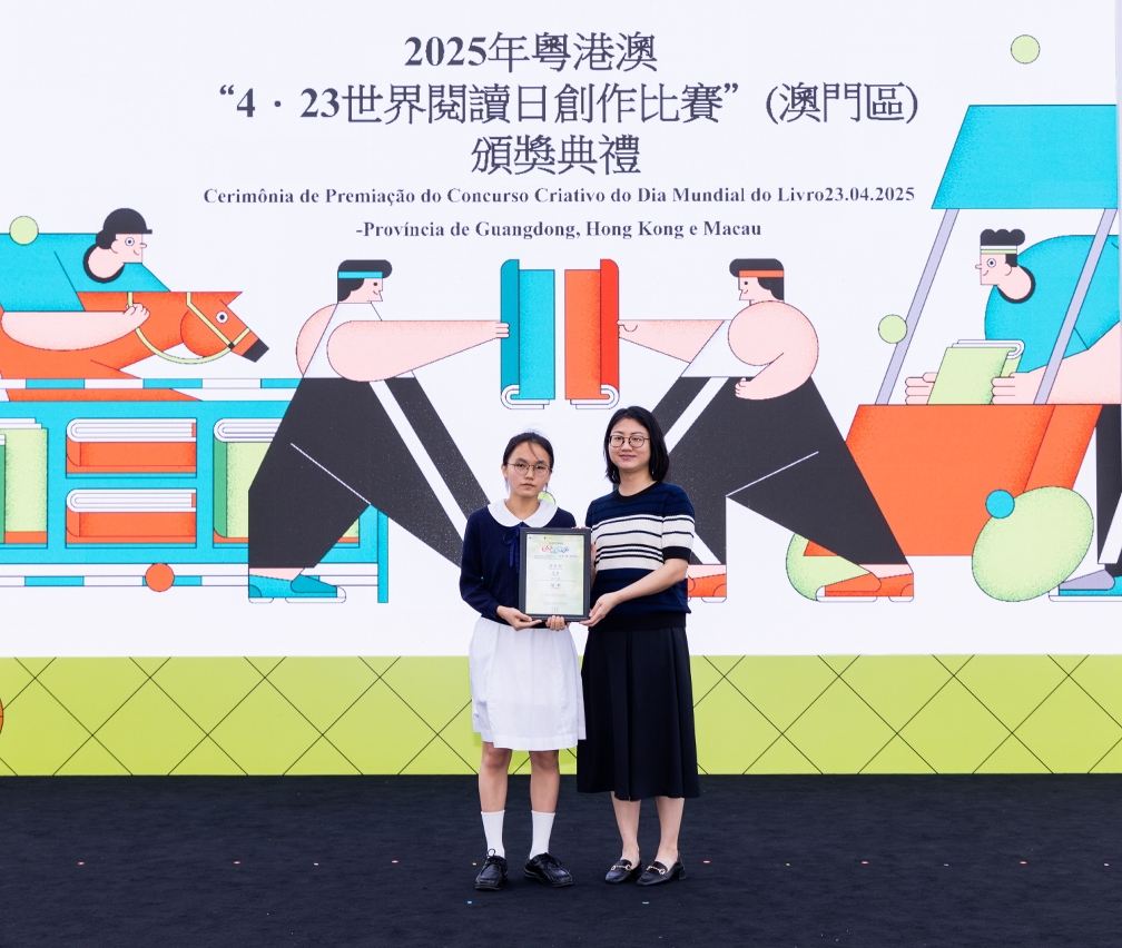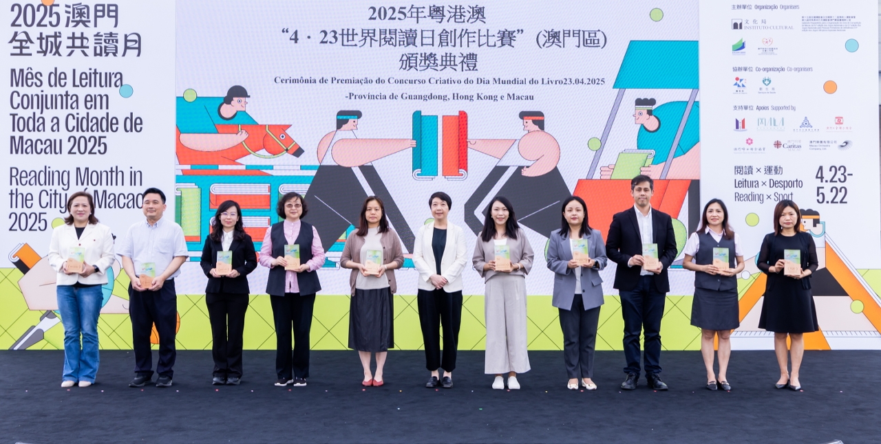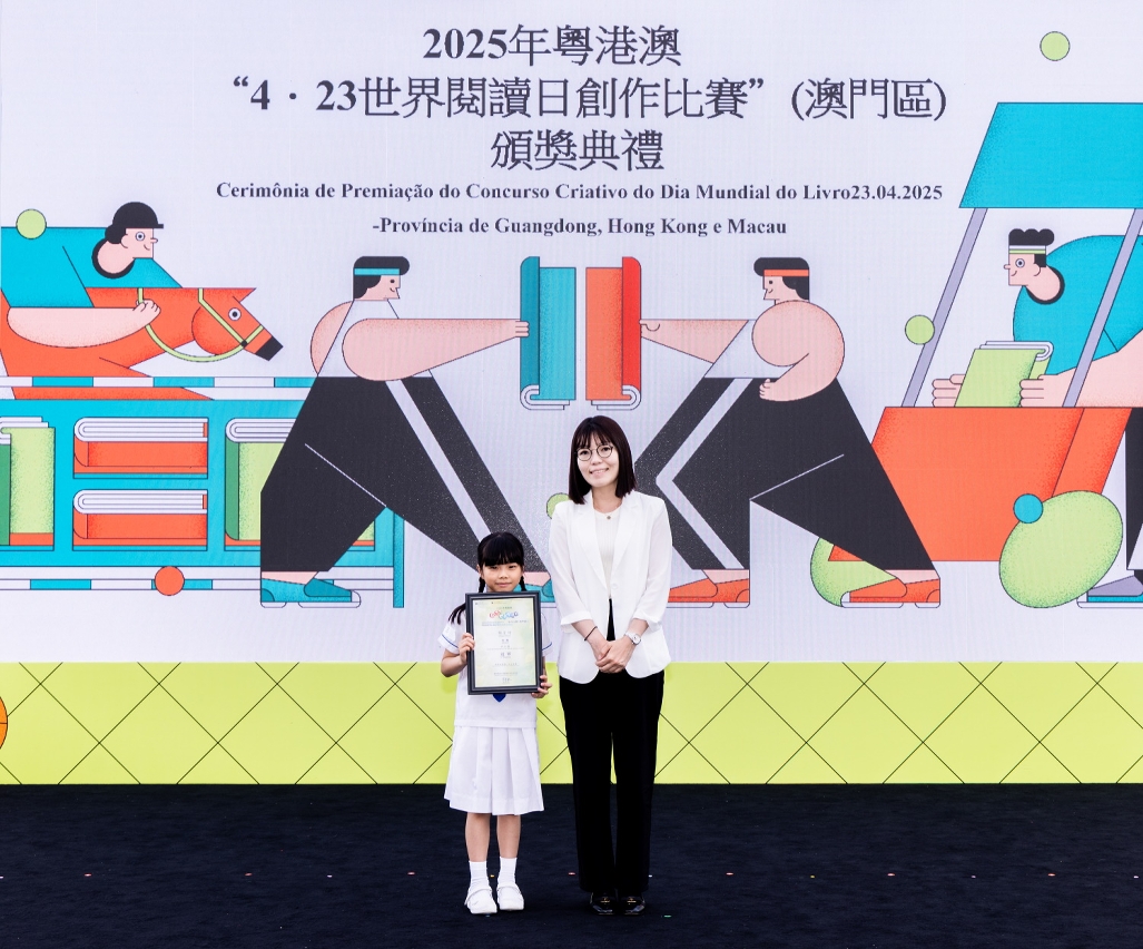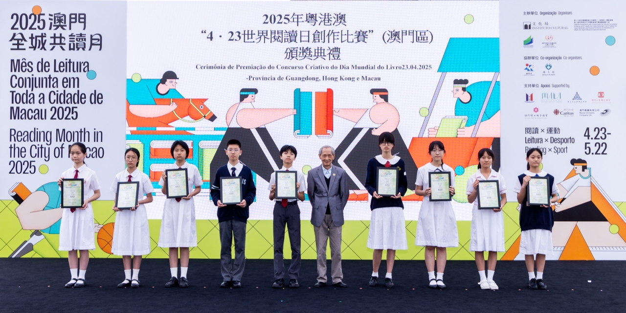 为庆祝“4‧23世界阅读日”,文化局联同广州、深圳及香港等城市之公共图书馆合作举办2025年粤港澳“4‧23世界阅读日创作比赛”。澳门区颁奖礼于4月27日(星期日)在澳门文化中心广场举行,65位学生获颁发奖状及向22间得奖者所属学校致送纪念座,征文组初中组学生分享获奖感言,场面热闹。