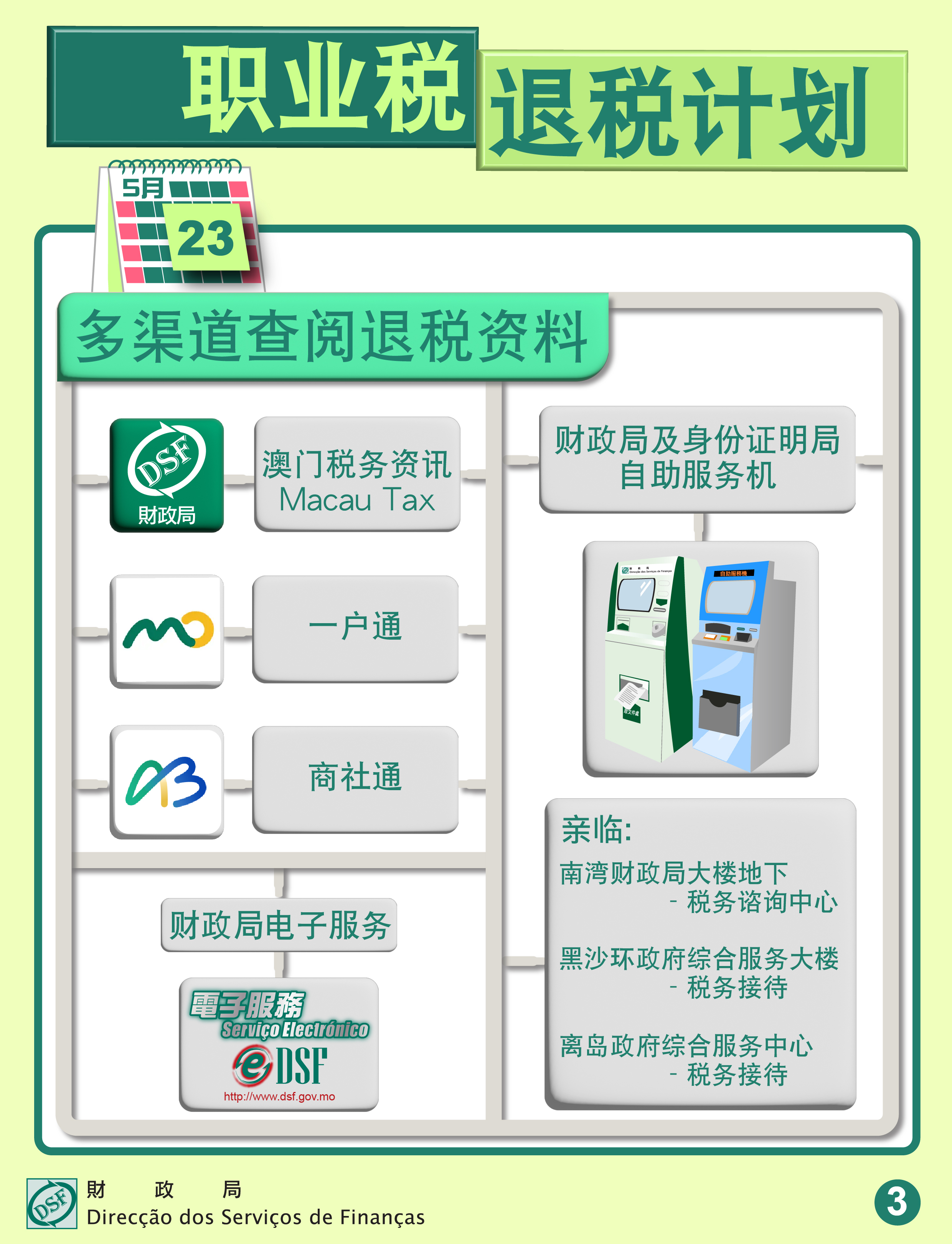 自5月23日起,纳税人可透过以下渠道查阅有关职业税退税计划资料:
