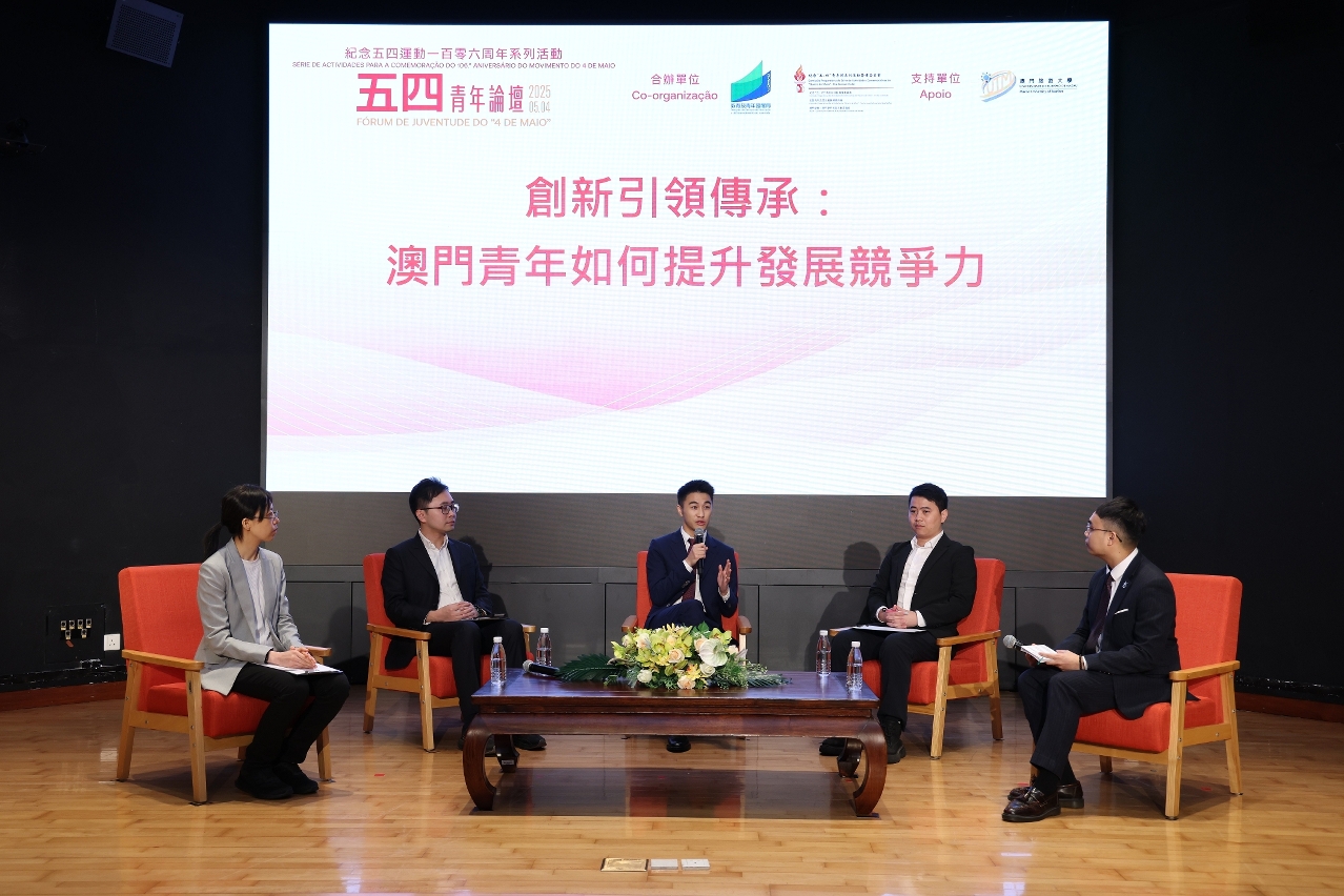 五四青年论坛于同日上午在澳门旅游大学(望厦校区)大礼堂举行。大会邀请了星竞威武集团董事长何猷君、山东极视角创始人陈振杰、无界方舟AutoArk创始人曾晓东、澳门大学科技学院助理教授郭善知,以“五四”传承与创新:澳门青年与未来为主题,分享创新创业与投身科技研究的经验。何猷君先生鼓励澳门青年应胸怀中国青年人的大国自信,主动学习,提升专业素养,积极参与国内外的交流活动。陈振杰先生指出科技变革的速度极快,创业者应在技术浪潮中找到突围方向,积极拥抱变化。曾晓东先生分享了人工智能产品的应用及其创业灵感,鼓励青年努力实现梦想。郭善知教授介绍智慧城市物联网、各项科研工作,以及青年参与科研、科普活动的资讯。主讲者在圆桌论坛中探讨青年在国家发展中应抓准着力点,学习并善用新兴技能提升个人竞争力,于新时代中实践自我价值,并以科技创新作为推动社会发展的动力,助力国家与澳门走向更好的未来。