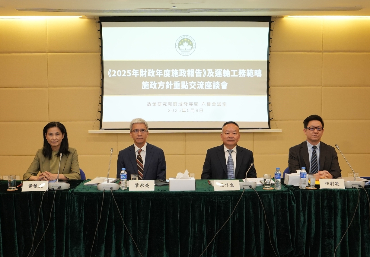 为进一步加强特区政府施政报告及施政方针重点的宣传工作,让社会各界更深入了解特区政府施政方向和工作部署,政策研究和区域发展局及特区政府政策宣传协调小组5月9日在政策研究和区域发展局会议室举行《2025年财政年度施政报告》及施政方针重点交流座谈会,政策研究和区域发展局、土地工务局、房屋局、海事及水务局的领导出席,为参加交流座谈会的社会人士介绍今年施政报告及运输工务范畴施政方针重点,并进行互动交流。交流座谈会主题涵盖广泛,包括“土地储备临时利用的规划”、“经屋法律制度”及“再生水供水计划”等领域。