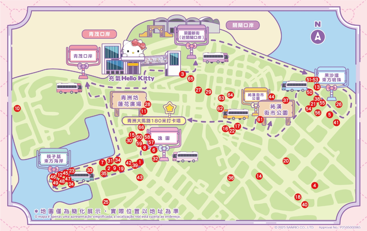 Hello Kitty主题巴士首次登陆澳门北区,巴士车身、座椅、扶手等融入了丰富的Hello Kitty元素,让每位乘客都能感受到Sanrio characters梦幻花园的氛围和独特魅力。主题巴士将从青茂口岸或关闸口岸出发,在北区循环行驶,沿线设有六个下车站点︰菜园新街(近关闸口岸)、黑沙环东方明珠、佑汉街市公园、逸园、筷子基东方海岸及青茂口岸,串联北区各处景点及商圈。