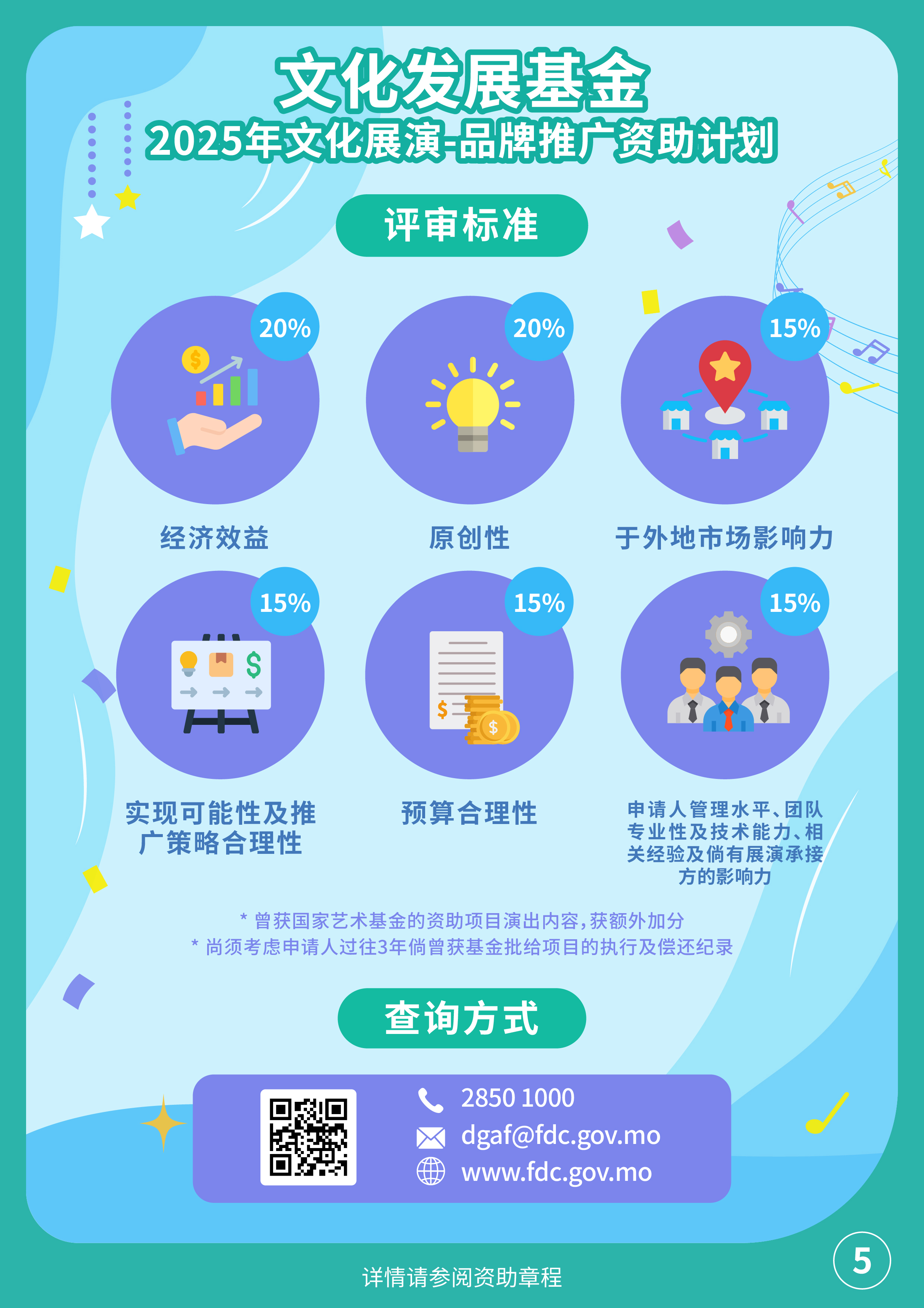 有意申请人可透过基金网页(www.fdc.gov.mo)浏览申请详情,如有疑问,欢迎致电2850 1000或电邮dgaf@fdc.gov.mo查询。