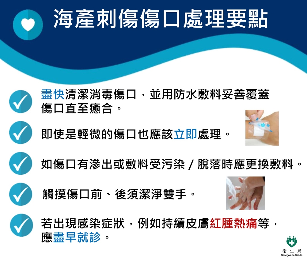 卫生局呼吁居民做好预防创伤弧菌感染的措施: