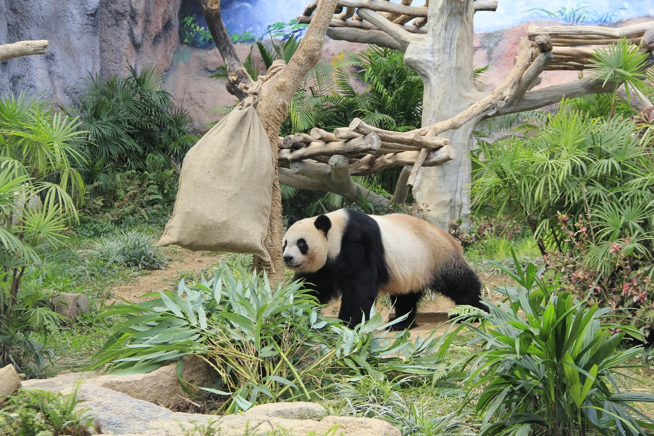 大熊猫馆目前饲养了四位成员,分别是现年十七岁的爸爸“开开”、十八岁的妈妈“心心”及九岁的孖仔“健健”和“康康”。在日常饲养工作中,饲养团队除了喂食和清洁工作外,还会对大熊猫进行医疗检查,藉此了解大熊猫的身体状况。为使大熊猫配合检查,饲养团队会对大熊猫进行行为训练,教导大熊猫作出相应的动作以配合检查及适应检查项目,让饲养团队了解大熊猫的详细身体状况。目前大熊猫“开心家族”已可配合于非麻醉的情况下进行采血、量血压、量心率及触诊等检查。