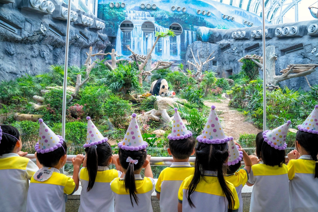 市政署于六月二十六日为大熊猫“健健”、“康康”举办九岁生日会,更邀请学校师生参加庆祝,为大熊猫兄弟送上暖暖的祝福。