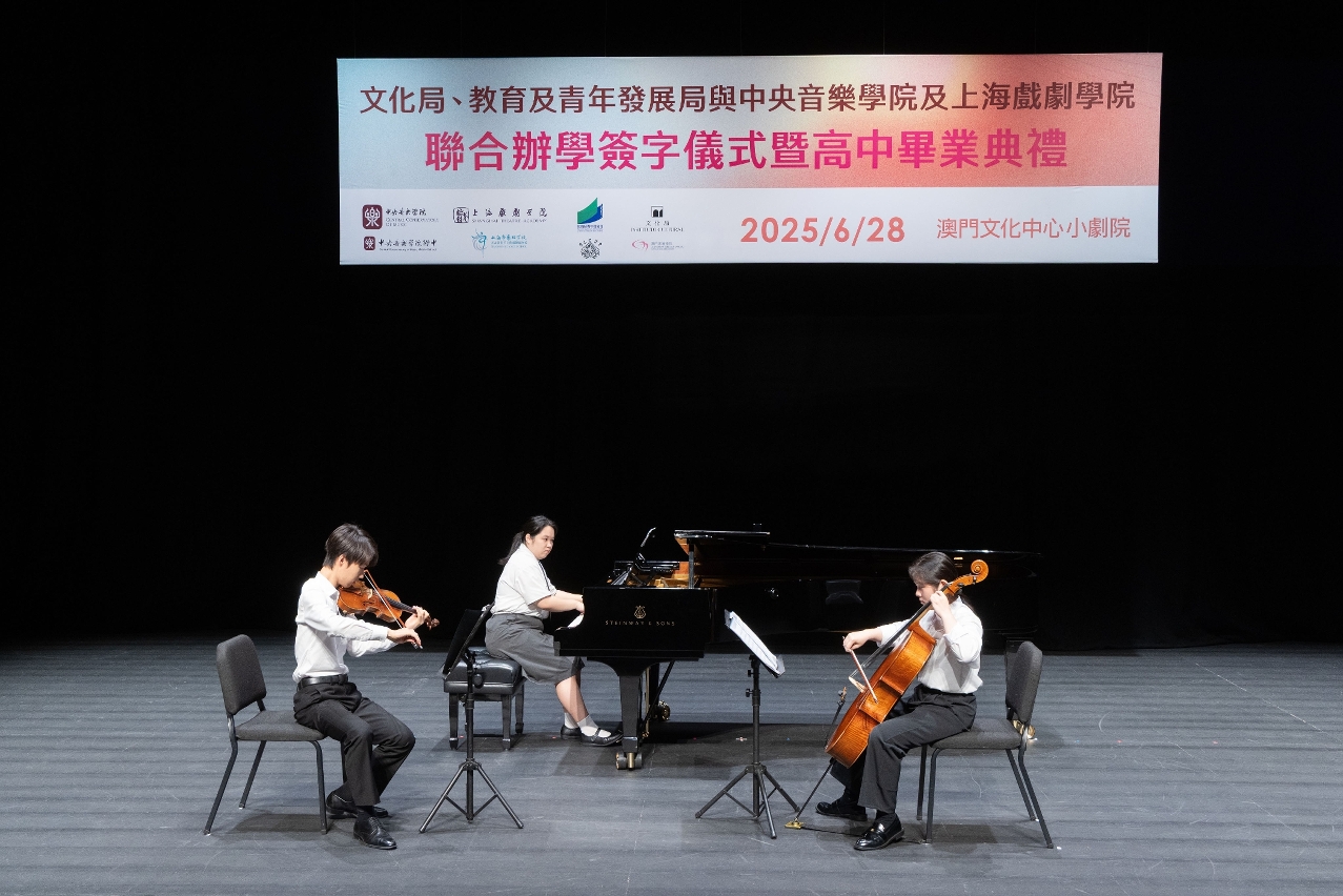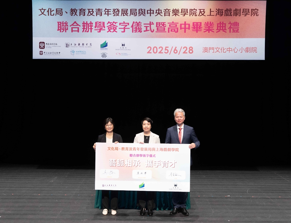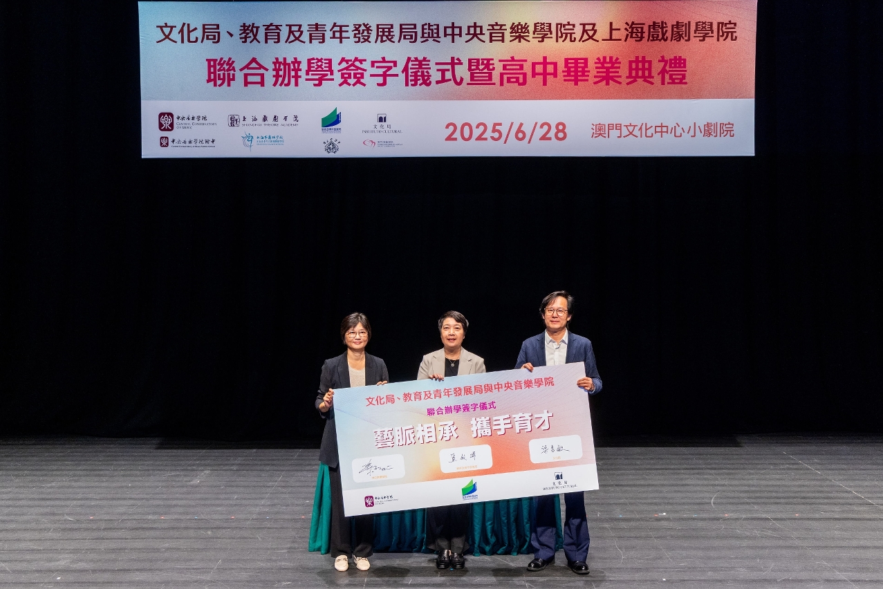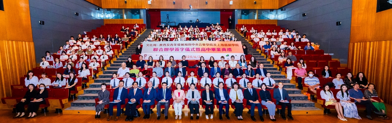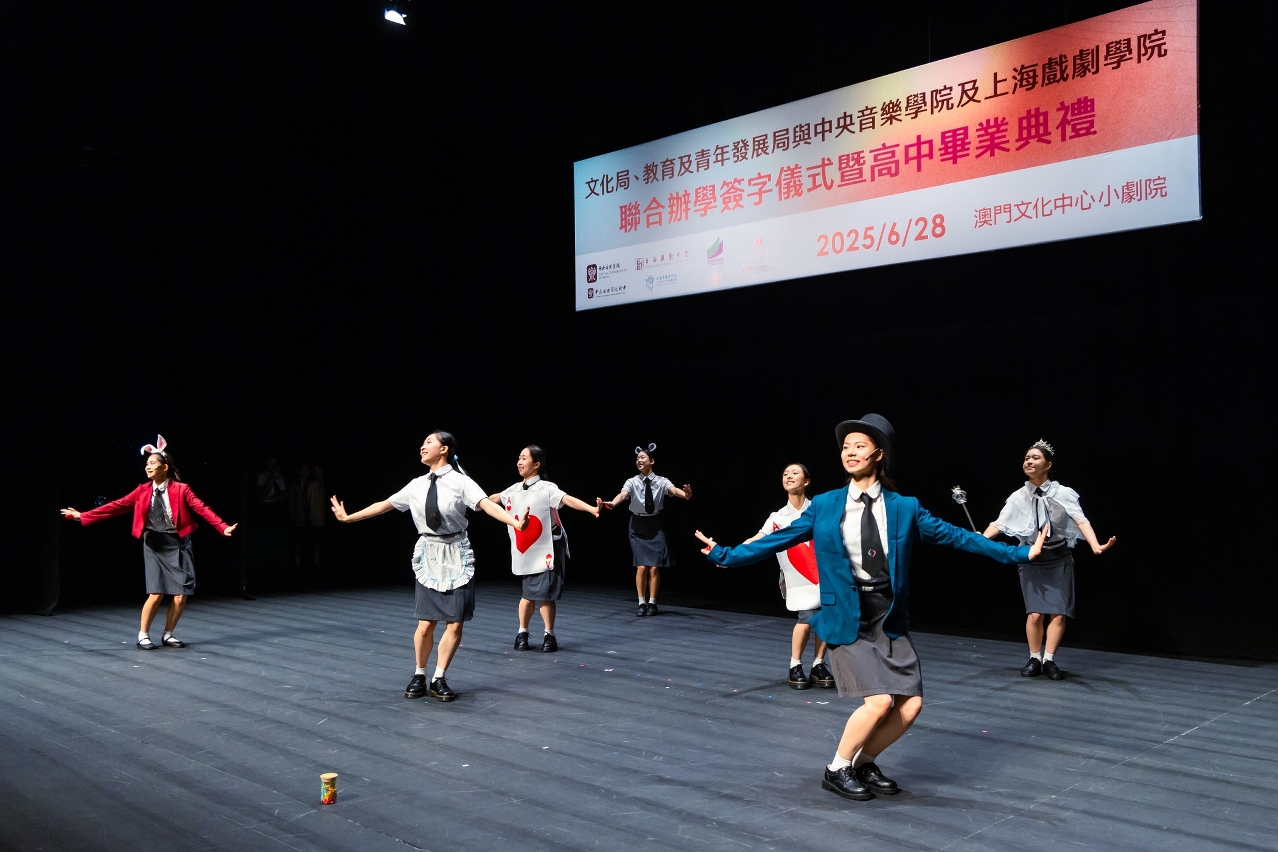 文化局、教育及青年发展局与中央音乐学院及上海戏剧学院于6月28日在澳门文化中心小剧院举办联合办学签字仪式,并同日举行文化局澳门演艺学院舞蹈学校第八届舞蹈职业技术高中毕业典礼,以及音乐学校第十二届音乐职业技术高中毕业典礼,一众嘉宾、师生、家长出席及见证。