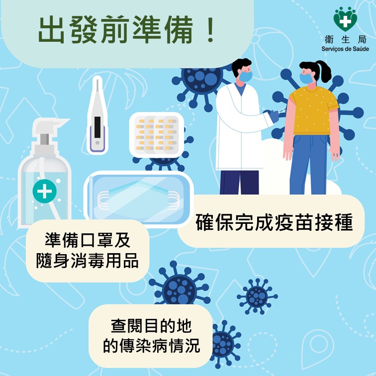 随着暑假来临,许多居民计划外游或出外探亲。为确保旅途安全,让居民安心享受假期并保障个人及家人的健康,卫生局提醒居民于外游前做好防范疾病的准备,建议在出发前先查阅目的地有关传染病流行情况、旅行期间做好防蚊措施、注意个人及食物卫生等,以降低感染登革热、呼吸道传染病及胃肠道疾病的风险。