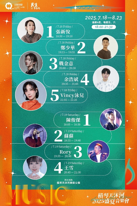 • 横琴天沐河2025盛夏音乐会(第一周嘉宾海报)