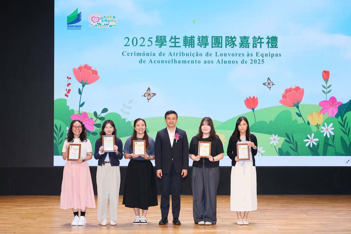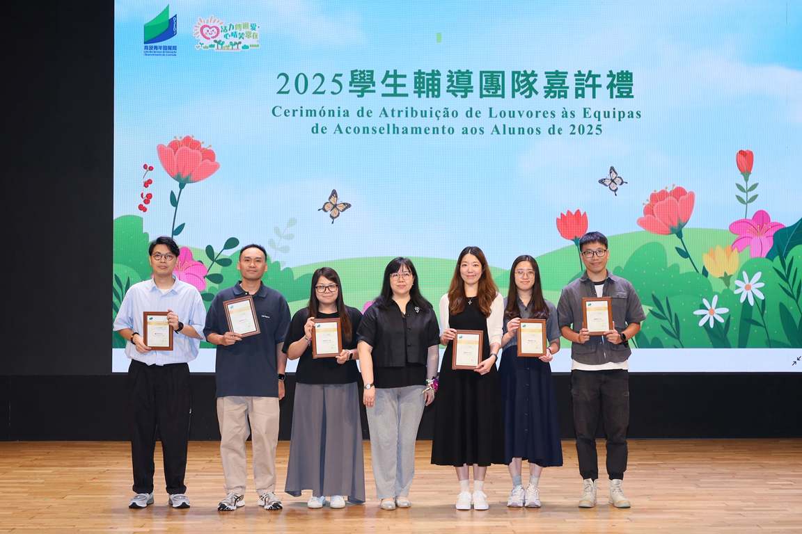 教育及青年发展局于7月21日在中葡职业技术学校举办“2025学生辅导团队嘉许礼”,向服务满一定年期的学生辅导团队成员颁发服务奖项,表扬其多年来恪尽职守和热心服务,来自10间学生辅导机构的负责人及辅导同工约200人出席。