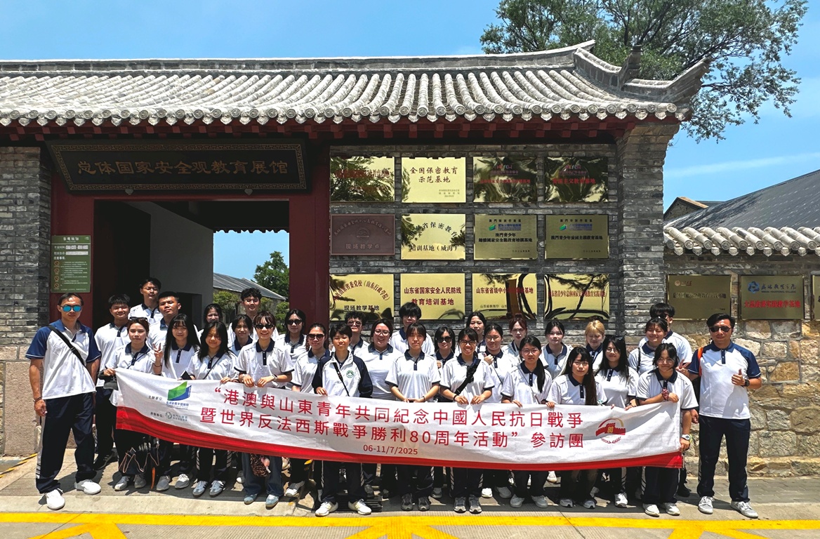 教育及青年发展局组织高等院校及中学的学生会、义工队骨干成员于7月6日至11日赴山东省,参与港澳与山东青年共同纪念中国人民抗日战争暨世界反法西斯战争胜利80周年活动,并走访青岛、烟台、威海的爱国主义教育基地和博物馆等,深化对抗战历史的认识,传承抗战精神,弘扬家国情怀。