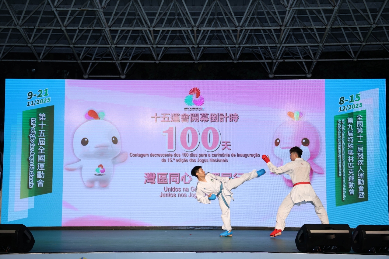 十五运会及残特奥会澳门赛区组委会亦于晚上8时在佑汉街市公园广场举行“倒数100日庆祝晚会”,吸引一众市民参与。十五运会及残特奥会澳门赛区组委会主席、社会文化司司长柯岚、社会文化司司长办公室主任林媛,十五运会及残特奥会澳门赛区筹备办公室主任潘永权,中国澳门体育暨奥林匹克委员会主席陈泽武及秘书长马志成主持了亮灯仪式,“全民全运 你我参与”同时点亮,象征着全澳市民携手同心,热烈迎接全运会的到来。晚会内容精彩丰富,龙狮献艺、空手道、幼儿篮球、排球及乒乓球表演,以及动感歌唱演出轮番登场,市民携老带幼,气氛欢乐。现场更设有运动体验和摊位游戏,让市民亲身参与、多角度感受全运氛围,场面热闹。