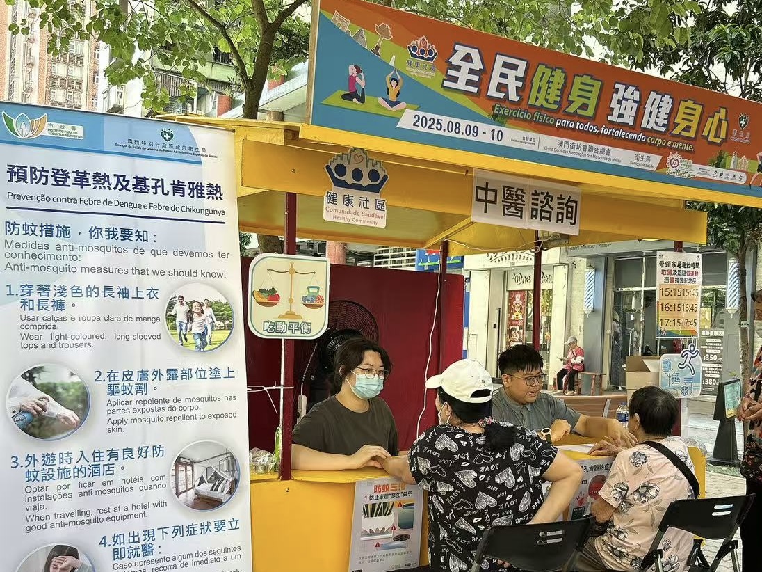 为积极落实“健康社区"计划推动居民进行规律运动,响应国家8月8日“全民健身日”,以及今年澳门承办第十五届全国运动会部份竞赛项目,卫生局联同10个社团机构分别于8月9至10日连续两天成功举办了以“全民健身.强健身心"为主题社区健康咨询站活动。