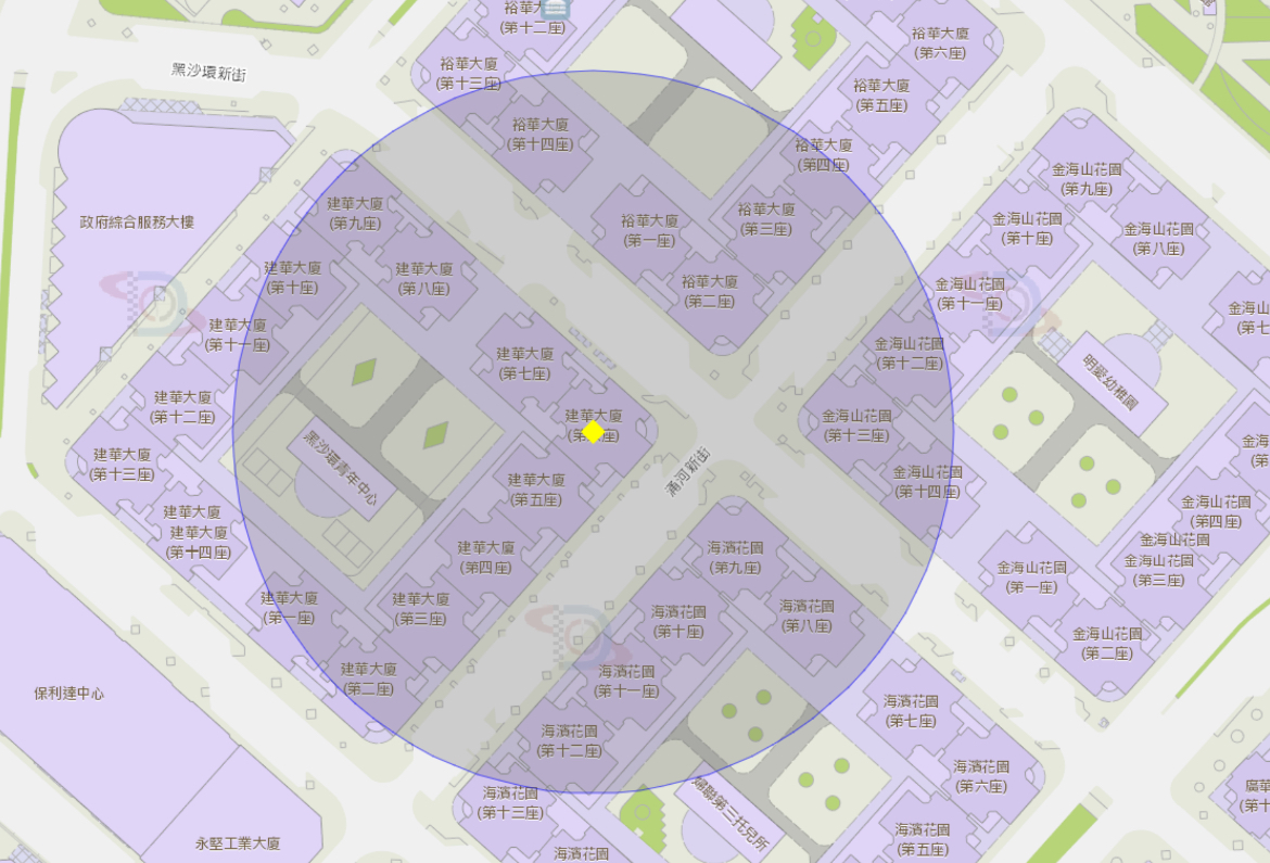 涌河新街建华大厦第六座附近风险区域100米半径范围