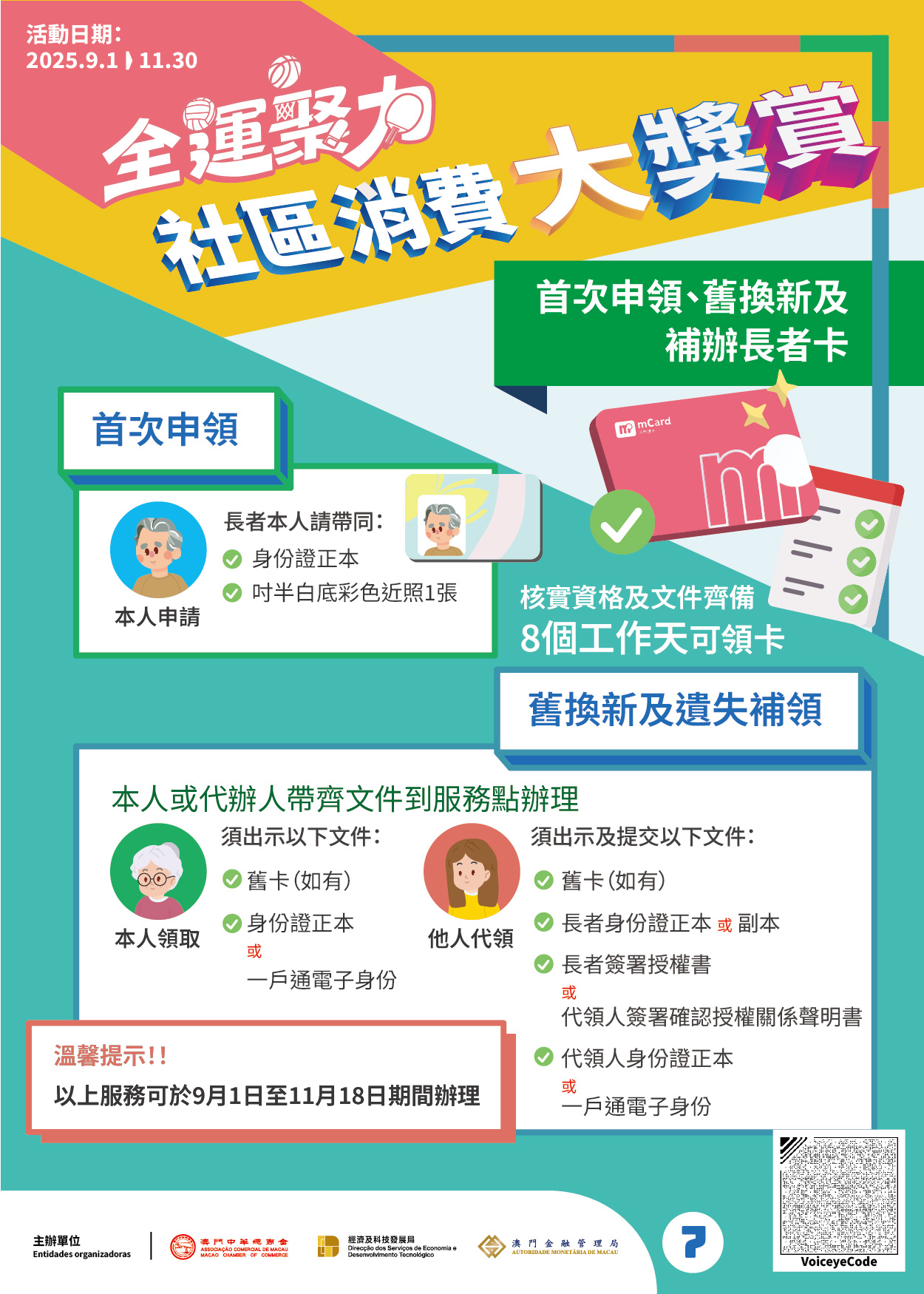 本次活动基本沿用“2025年社区消费大奖赏”的模式,并作出两项优化:一是将“长者立减优惠”额度提升至 500 元;二是为持有残评证的人士派发内含500元立减优惠的“关爱卡”。具体安排如下: