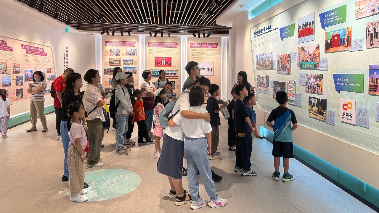 • 亲子们透过澳门基本法纪念馆的导赏讲解了解《澳门特别行政区基本法》的成功实践。