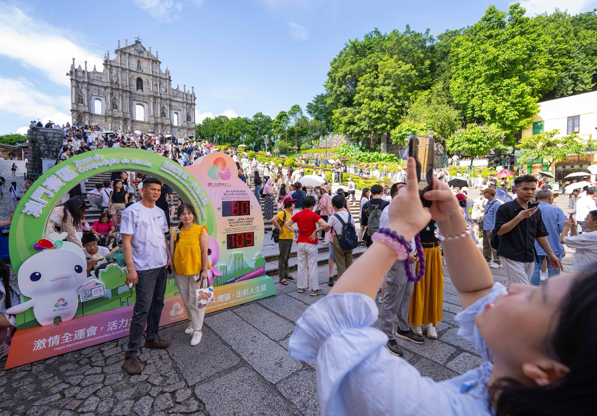 为了让市民与旅客感受到全运会的临近气氛,澳门多个地点包括:耶稣会纪念广场(大三巴)、佑汉街市公园、关闸广场、三盏灯圆形地、南湾湖景大马路行人道及氹仔运动场圆形地设置了「倒计时打卡装置」,营造全民期待的氛围,留下与全运同行的美好回忆。
