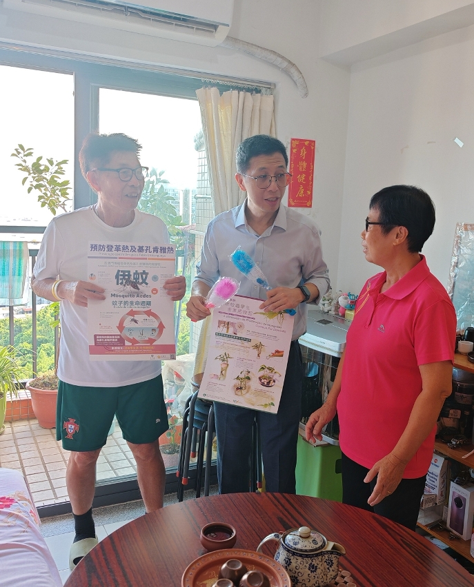 因应邻近地区登革热及基孔肯雅热(下称“双热”)个案呈上升趋势,以及跨境人员往来频繁,本澳输入性“双热”个案可能增加,社会工作局十分重视本澳社服设施的防控应对工作,于今(29)日到长者服务设施及随外展家居照护服务队上门探访服务使用者,对其开展 防控“双热”健康宣导,提升本澳长者等服务用者防范蚊媒疾病的意识,共同守护社区健康。
