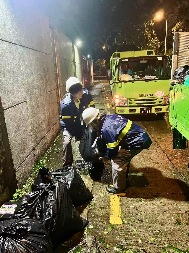 八号风球除下后,市政署即协调澳门清洁专营有限公司,加快清运各区垃圾,并于多个低洼地区设置临时垃圾收集点,供市民弃置垃圾及水浸过的物品。市政署呼吁市民,应优先处理容易腐烂的生活垃圾,勿将垃圾、大件废弃家具、被浸泡的食品等随便弃置在街道上。而高层大厦的管理实体亦应配合,按时将垃圾桶有序推放到公共街道待收,加快清运效率。